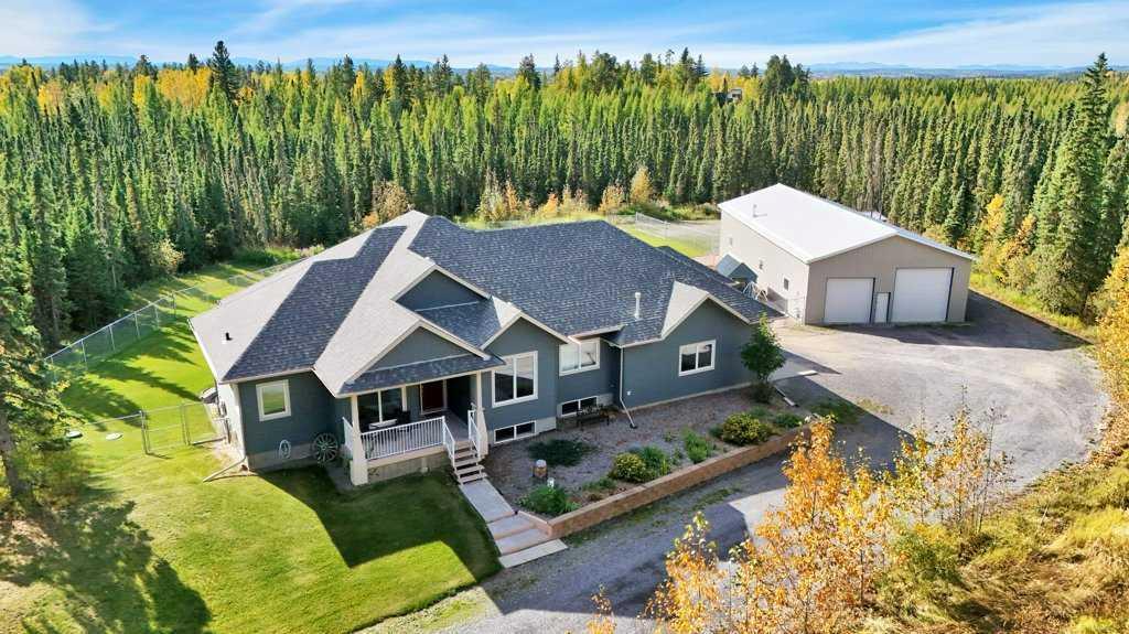 Executive acreage in a family-orientated subdivision. It is located on 4.40 acres only 10 minutes from Rocky Mountain House, this home has everything to offer. The main floor offers an open concept with vaulted ceilings, tons of natural light, large windows, and quality finishings. The gourmet kitchen is every chef's dream with maple cabinetry, granite countertops, a 6 burner gas stove top, a double oven, a large island, and a walk-in pantry. The main floor living area has a stone face gas fireplace and mantle, great for hanging the Xmas stockings. The primary suite has a glass French door leading to a spacious bedroom with a tray ceiling, a walk-in closet, and organizers, the ensuite is relaxing with a stand-up tiled shower, jetted tub, and large granite counter space. Enjoy your own outside space with patio doors leading to the deck, excellent placement for a hot tub. The main floor is complete with 2 more spacious bedrooms and 4 piece bathroom. The walkout basement with in-floor heat has a large family room with a wet bar, media or office room, 2 bedrooms, 3 piece bath, and a separate laundry room with a laundry shoot from the ensuite. Enjoy the built-in surround sound speaker system in this home. This basement space is great for entertaining, with a wet bar, pool table, walkout to stamped concrete firepit area and back yard fenced for pets and kids. The attached 3 heated car garage is an excellent space to park or use one bay for a workout area. The 34x80 metal-clad shop is every man's escape. The front part (34x48) is ideal for storing everything from your trailer to all the "toys" with 12x12, and 10x10 overhead doors and 14 ft ceilings. The rear part (34x32) has an overhead gas heater with mezzanine,10x10 and 8x9 overhead doors. A garden shed, garden boxes, and greenhouse complete this package. Renos include a new hot water tank, carpeting the main floor bedrooms, some new light fixtures on the main floor, a stamped concrete firepit area, chain link fencing, and an overhead heater in the triple garage.