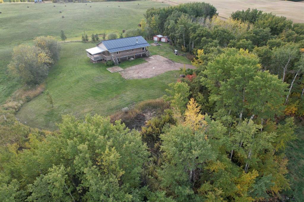 Nestled on 2.57 acres surrounded by serene farmland, this newer home, built in 2008, offers the perfect blend of modern comfort and country charm. A long driveway leads to the house, which features an open-concept main floor with a cozy fireplace in the living room. The kitchen is set up with a gas stove, microwave hood fan and complete with a breakfast bar, ample cabinetry, and a convenient island. Step outside onto the covered deck to enjoy evenings under the stars. Along with the kitchen and living room, the main floor also has the master bedroom that boasts a private ensuite, while an additional bedroom and a full bathroom provide plenty of space for family and guests. The lower level is equally impressive, with 9-foot ceilings, in-floor heating, a spacious family room, 2 additional bedrooms and an 3piece bathroom. Although not currently connected, the home is wired for air conditioning and has a new on-demand hot water heater, new septic tank (2021) and new well pump (2022). Located 2 miles off pavement, 9 +/- miles from Bashaw and 20 +/- miles from Ponoka, this acreage offers the best of both worlds: the peace and quiet of rural living with the convenience of nearby amenities.