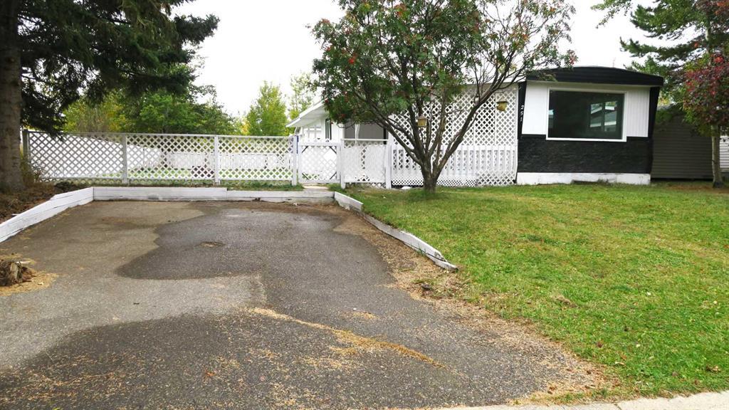 YOU OWN THE LOT . *** NO FEES . ****Home faces Large centre Cul-de-sac park /Playground with grass & some trees (Very Nice).Home backs to large open hay field & treed area again very nice . Home has been extensively renovated inside & out including NEW Windows and much more.Kitchen with eating area and Beautiful white kitchen cabinets, open plan with view to LARGE living room . Home was THREE bedroom now 2 (CAN easily put back to 3 Bdrms. by putting wall back ) . Familyroom with sliding doors and another door to TWO HUGE covered DECKS. HUGE PRIVATE FENCED PIE shaped lot with south exposure .TWO CAR FRONT PAVED parking pad. OVERSIZE rear lane access garage and rear lane parking area for 2 more cars . Property shows well inside and out . AMAZING LOT and LOCATION.