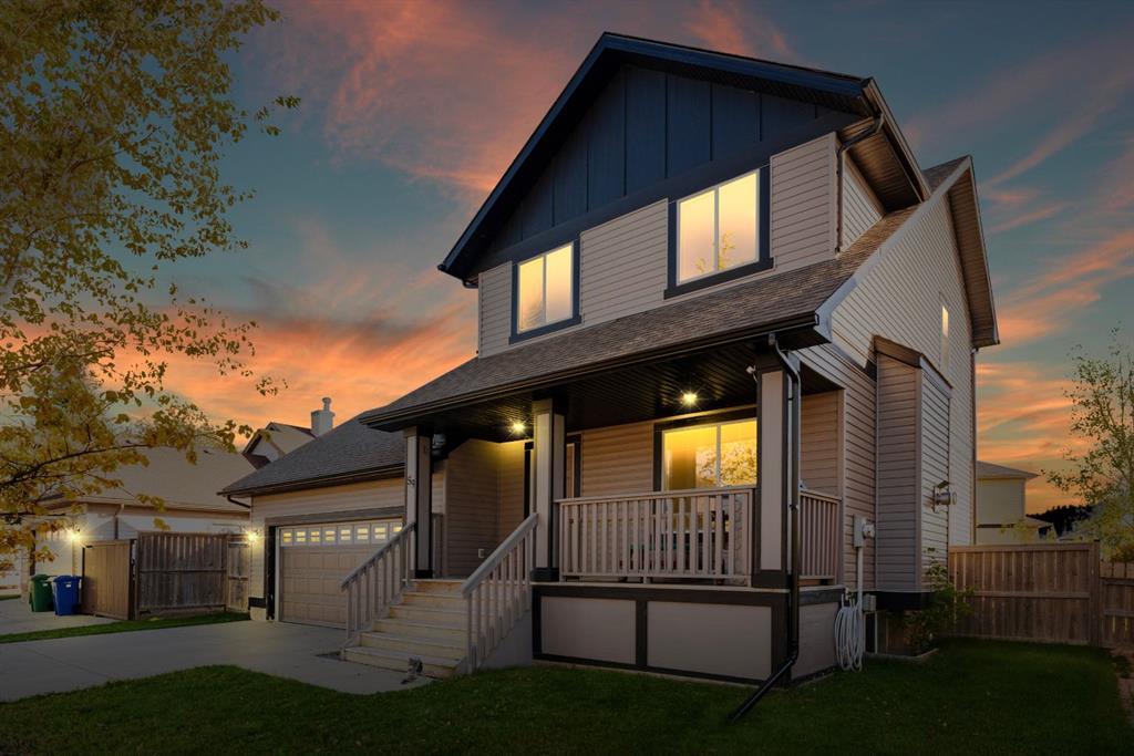 Welcome to your new home in Langdon! This spacious and affordable fully finished home is perfect for young families or first-time buyers. From the moment you step onto the charming covered front porch, you’ll feel the welcoming vibe that matches the friendly small-town feel of Langdon itself. Inside, the main floor features 9’ ceilings and stylish multi-tone laminate flooring that ties the entire space together. The cozy living room, complete with a gas fireplace surrounded by stone and a wooden mantle, offers the perfect spot to relax. The open dining area has plenty of natural light from a large window and is located right next to the kitchen, which boasts warm cabinetry, all appliances included, and a functional center island. Step out into your south-facing backyard—ideal for grilling, entertaining, and giving the kids space to run! The yard is fully fenced and comes with a two-tiered deck for all your outdoor fun. Upstairs, you’ll find three generously sized bedrooms, including the primary suite with its own ensuite and walk-in closet. The other two bedrooms offer great space for the kids, with built-in closet shelving to keep things organized. But the basement is where the magic happens—your little ones will love the built-in playroom designed like a castle! Plus, there's a stylish built-in entertainment unit to keep your games, toys, and gear tucked away. This home is located near schools and parks, making it ideal for families. Come see why so many people are choosing to call Langdon home!