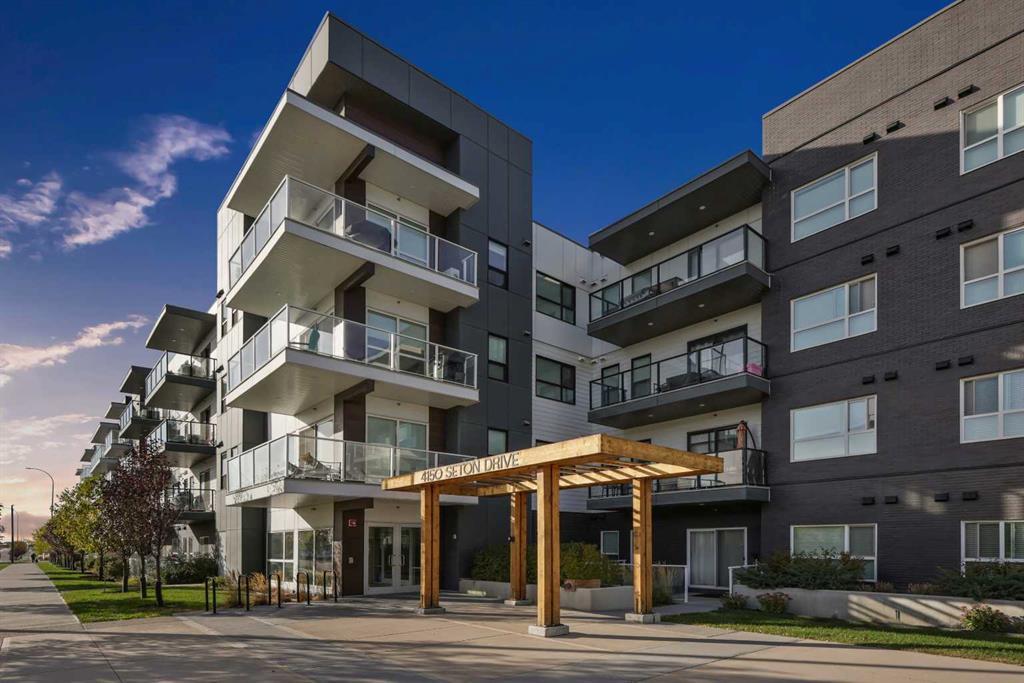 Welcome to this IMMACULATE 1 bedroom, 1 bathroom condo in the amazing community of Seton SE surrounded by amazing walking paths, parks, schools, shopping and steps from the South Health Campus Hospital. This condo features everything you will need with a beautifully finished kitchen with granite counter tops, tiled back splash, microwave/hood vent combo for maximum cupboard space, a full sized pantry, and stainless steel appliances! It also features a large living area for relaxing or entertaining with a large south facing window with an abundance of natural light. A large bedroom with a walk-in closet, a 3 piece bathroom and front load, in-unit washer and dryer in the large front mud room, that could be used as an at home office space as well! Enjoy the morning sun on the south facing balcony with a clear mountain view! Stay warm in the winter with the HEATED & SECURED underground parking and a secured storage area. This professionally managed building is very well taken care of and shows it! Book your showing today to check out this AMAZING HOME!