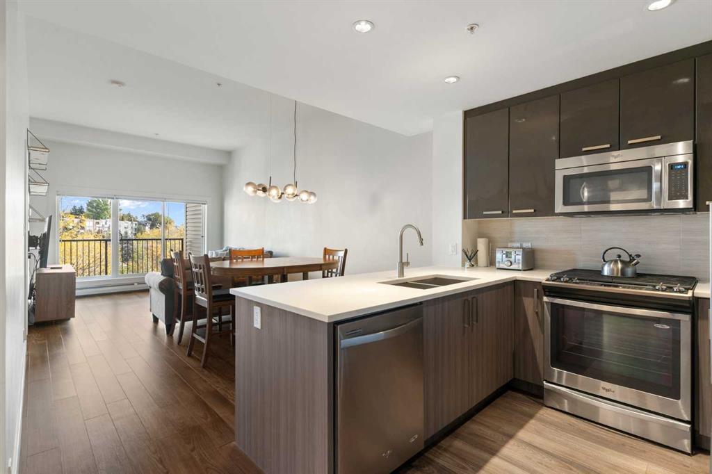 Say “hello!” to your new home in the coveted community of Bridgeland. This bright & sunny TOP FLOOR CORNER UNIT is equipped with 2 bedrooms, 2 full bathrooms & a covered balcony! As you enter the unit, you’ll notice the super functional open concept floor plan. The stunning kitchen has lots of storage space, sleek & modern cabinetry, SS appliances including GAS stove & quartz countertops! There is tons of space for a dining table and the living room is large with super tall ceilings and access to the covered east facing balcony w/ views of the courtyard – enjoy a coffee or tea and watch the sunrise here each morning! The primary bedroom features a walk-in closet, plus the 3 pc ensuite bathroom w/ quartz counters and a walk-in shower. The 2nd bedroom is a great size as well. The secondary full bathroom offers a shower/tub combo w/ the same stunning finishings & the unit offers in-suite laundry. This unit even comes with an underground titled parking stall to keep your car warm all winter long & a storage locker! The Bridgeland Hill building offers loads of amenities including a fitness centre, bike storage room, visitor parking & more! This location is tough to beat as it is walkable to downtown, the c-train, and only a 15 minute drive to the airport. Perfect for the traveling professional, a young couple, or investors. You will love Bridgeland's close-knit community vibe and array of local amenities including local restaurants, boutique shops, schools, and the Bridgeland-Riverside Farmers’ Market. Book your showing today before it's gone! *Some photos have virtual staging*