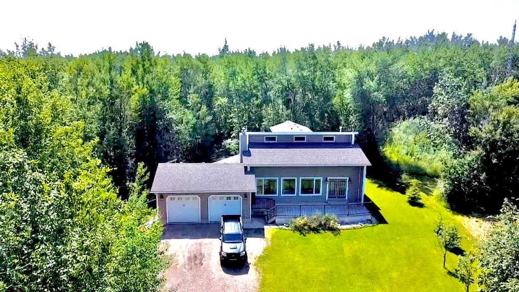Discover the charm of this stunning 1.5-story home nestled among mature trees on a spacious 1.09-acre lot. Located in the peaceful subdivision of Mission Village Phase 2, this property offers abundant additional parking, a relaxation area, and great storage. Enjoy the convenience of being just a 5-minute drive to Lac La Biche on paved roads! The driveway provides ample parking and leads to a heated, oversized (26'6" x 24') 2-car attached garage. Now let's walk inside, the living room and dining room boast high ceilings, large windows, hardwood floors, 3 piece bath with walk in shower, and patio doors opening to a large front deck. The spacious dining area and breakfast bar are perfect for get togethers, and family dining. The bright and modern kitchen features white cabinetry, stainless steel appliances, ample counter space, and a large pantry. Additional highlights include main floor laundry and a versatile office space with a view and closet which could be used as a smaller bedroom.Retreat to the second level to find 3 bedrooms with views of the backyard, and a 4-piece bathroom. Enjoy outdoor living on either the front or back deck, both offering sun and shade options. The private backyard is ideal for gatherings around a fire with friends and family. A large 10' x 22' storage shed provides space for yard equipment and toys, with a covered area perfect for stacking your firewood. This property is a pleasure to show, and is hooked to municipal water n sewer. book you’re viewing today! Priced to sell at $399000.00