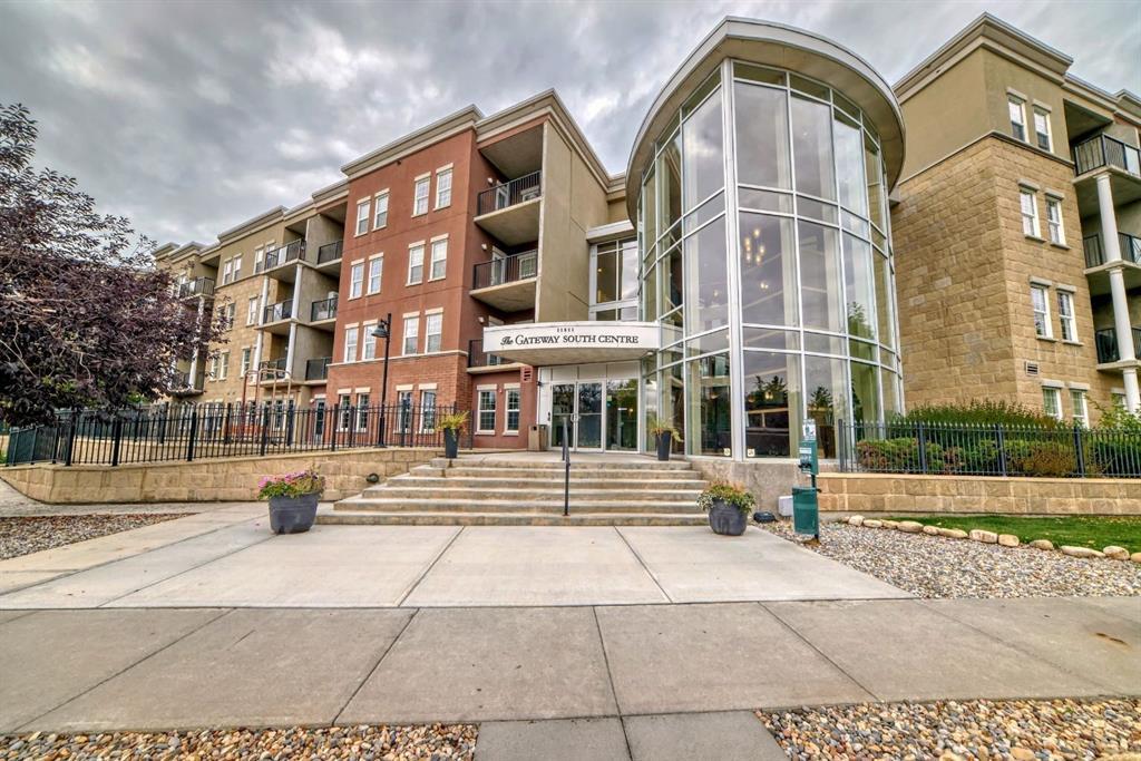 AIR CONDITIONED TOP FLOOR PENTHOUSE UNIT OVERLOOKING THE AMAZING COURTYARD WITH UNOBSTRUCTED VIEWS OF DOWNTOWN!!! THIS IS A CONCRETE BUILDING. Updated one bedroom unit with den that has floor to ceiling windows in the bedroom. Covered belcony with a gas line for your BBQ. The top floor units also have the higher ceilings. New carpet in the bedroom and living room and new paint throughout....SHOWS AMAZING.... The kitchen offers granite counter tops and Stainless Steel Appliances with a built-in microwave. In-suite laundry which includes the front load washer and dryer. This complex features a large fitness centre with a studio for yoga and aerobics, Two owner lounges with kitchens, meeting rooms and guest suites for visitors. There is one titled under ground parking stall which will be very nice with winter coming. The condo fee's include all of the utilities. Directly out of the main entrance, you are in walking distance to the Anderson LRT, Avenida shopping complex, South Centre Mall and public transportation. Amazing complex and this unit shows like new!