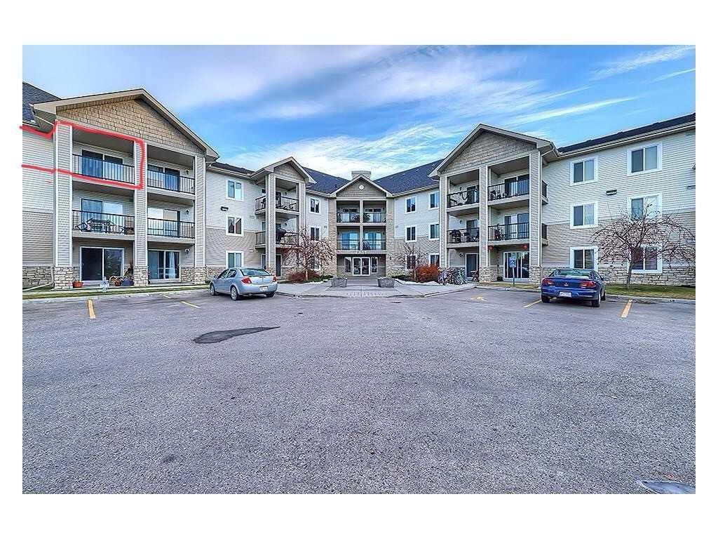 Welcome to the Top Floor 1-bed, 1-bath + den unit close to shopping, transit & many great amenities. Open & bright w/ large windows, newer laminate floor, fresh paint thru out whole unit. L–Type kitchen features light wood cabinets, tons of storage & counter space, and room for eat-in dining or mobile island. Bright living area w/ sliding glass doors to covered West-facing balcony. Spacious master bedroom, w/ large West-facing window. Sizeable den off the kitchen is great for a home office, playroom or extra storage space. In-suite laundry, and surface parking stall #18 is included. CONDO FEES INCLUDE ALL UTILITIES! (ELECTRIC, HEAT AND WATER.) Located close to Fish Creek Park, groceries, shops & transit – great for singles, couples or families!
