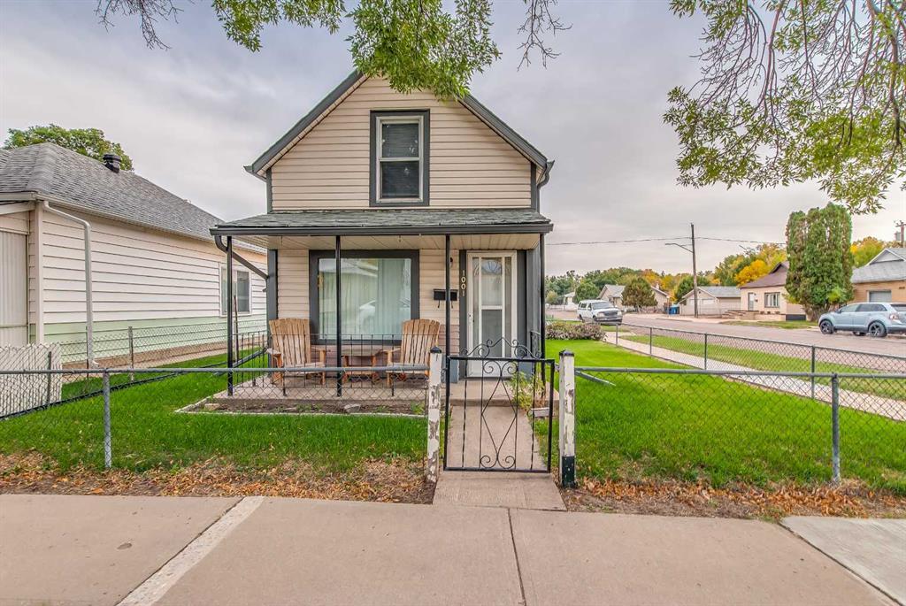 Charming 1.5-storey home on a corner lot. This residence features a bright living room, a kitchen with dining space, a 3-piece bathroom, and a mudroom on the main floor. Upstairs, you'll find a large bedroom and a versatile multipurpose space, ideal for an office or play area. The unfinished basement includes a laundry area with a washer and dryer, additional storage space, and a cold room. Electrical has been upgraded to 100 amp. The exterior offers a covered front patio, fenced front and back yards, two storage sheds, and a concrete parking pad all on a corner lot. Plenty of room to build a garage! Perfect for first-time buyers or as a revenue property with immediate possession available. If the buyer is interested, the seller will sell the 1-2 properties next to it. Don’t miss out!