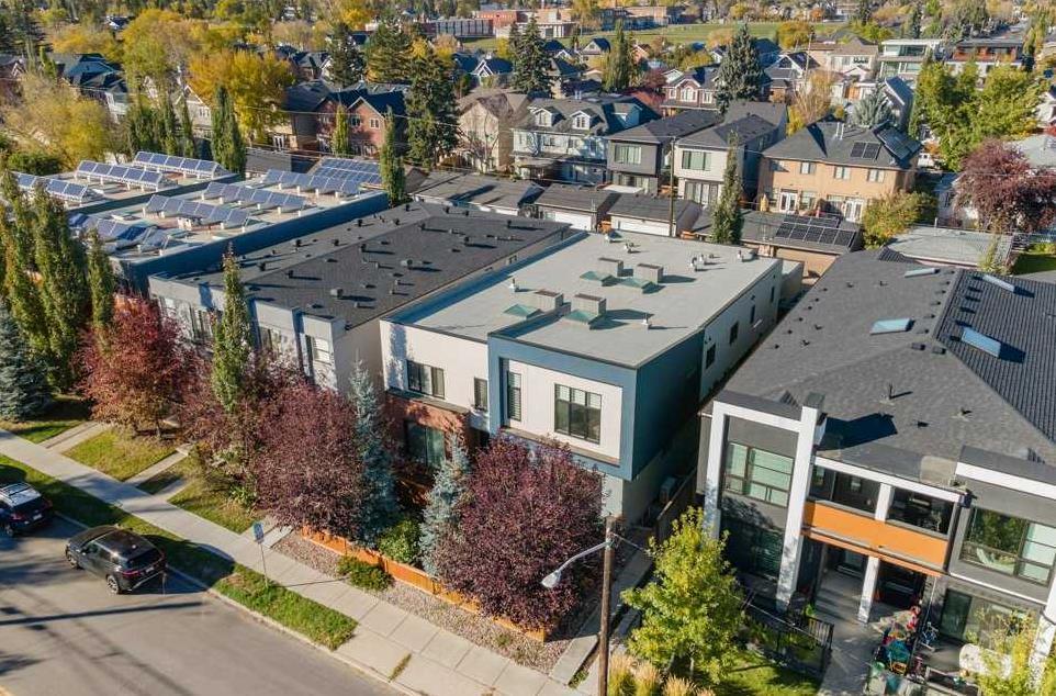 Stunning Hillhurst home with Modern Charm and Prime Location! Discover your dream home in one of Calgary's most desirable neighbourhoods! This beautiful townhouse, nestled in the heart of Hillhurst, offers over 1,900 sq ft of thoughtfully designed living space. Built in 2015, this home features central air conditioning and a stylish kitchen equipped with quartz countertops, stainless steel appliances, a gas range, built-in microwave, and a cozy coffee bar. Enjoy the warmth of laminate flooring and a gas fireplace on the main level, making this the perfect home for entertaining or relaxing. Upstairs, you’ll find two spacious bedrooms, including a flawless primary suite boasting a luxurious 4-piece ensuite with dual vanity sinks, quartz countertops, and a stunning walk-in shower. The convenient stacked laundry adds to the ease of living. The fully finished basement provides additional space with a third bedroom and a versatile living area ideal for game nights or unwinding after a long day. Completing this fabulous property is a detached garage with lane access. Located just a short stroll from the Bow River, SAIT, Riley Park, Lions Park, and all essential amenities, this home offers the perfect blend of comfort and convenience. Don’t miss out on the chance to make this exceptional Hillhurst residence your own—call your favourite realtor today to schedule a viewing!