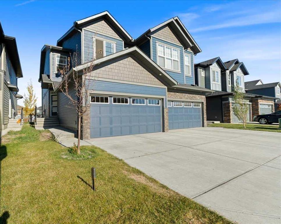 OPEN HOUSE SUNDAY NOVEMBER 3RD FROM 1-3. STOP BY TO SAY HELLO !! Back on the market due to Financing falling through - If you missed your chance before, this is it!! - Luxurious Executive Home in Legacy - Backing onto Greenspace! A Rare Find. Built along the pathway, is an exquisite collection of semi-detached, double front garage homes crafted by Armour Developments Ltd. These homes are a rare find for the size and front drive option. Nestled in a master-planned community, these homes offer a serene lifestyle with direct access to Legacy's expansive pathway system and proximity to the community playground and basketball court. Key Features: - Spacious Design: Enjoy open-concept living, highlighted by 9' ceilings and wide plank flooring throughout the main floor. - Gourmet Kitchen: The heart of the home features designer cabinetry with 42" shaker profile cabinets that have soft-close doors and drawers, stone countertops, tiled backsplash, and a large island with and counter height eating bar. Equipped with stainless steel appliances. - Elegant Bathrooms: Complete with stylish tile flooring and perfectly paired lighting ensures both functionality and sophistication. - Thoughtful Details: This home boasts elevated finishings such as maintenance-free fibre-cement siding with Eldorado stone accents, soundproof and fireproof common walls, and energy-efficient windows. - Convenient Features: Laundry is conveniently located on the upper floor, separate ensuite bathroom for added privacy, and a bonus room - Outdoor Living: Step outside to enjoy the rear direct access to the greenspace and pathways, playground and basketball court, perfect for outdoor relaxation and recreation. This exceptional property combines luxury, comfort and modern living, making it the ideal choice for families and professionals alike. Don’t miss your chance to make this stunning home your own! Contact your favorite agent today for more information or to schedule a viewing!