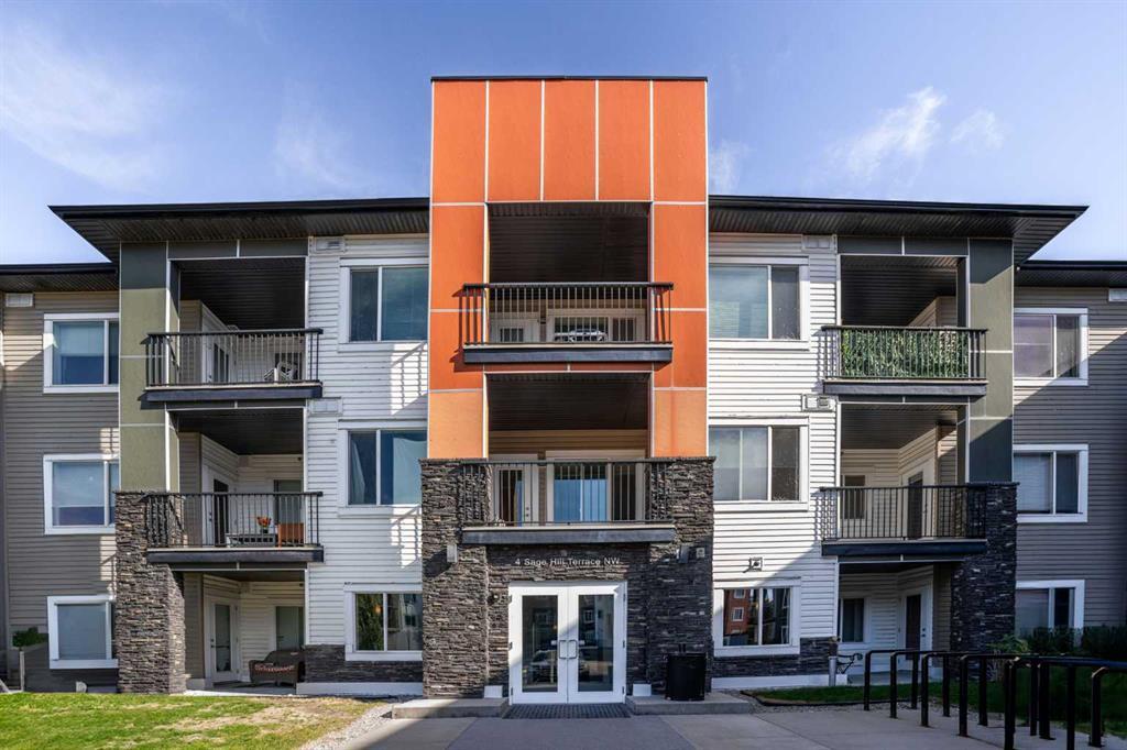 Welcome to this immaculate upgraded corner unit in the Viridian of Sage Hill. This ground floor 2 bed, 2 bath unit with 814 sq ft of living space features a bright, open floor plan with large windows providing abundant natural light. The chef's kitchen has quartz counters, a custom tiled backsplash, stainless steel appliances, and full-height cabinetry, and it is open to the living and dining areas. The spacious primary bedroom with upgraded carpet provides a double walk-through closet and a private 4 pc en suite. A second large bedroom and 4 pc main bath complete the bright, open suite. Other features include newer vinyl plank flooring, radiant floor heating, a private covered patio, a full-sized stacked washer/dryer and one assigned parking stall. This great condo is ideally located close to transit, pathways with shops and restaurants nearby and minutes to Stoney Trail. Don't miss out on your opportunity to view this great unit today!