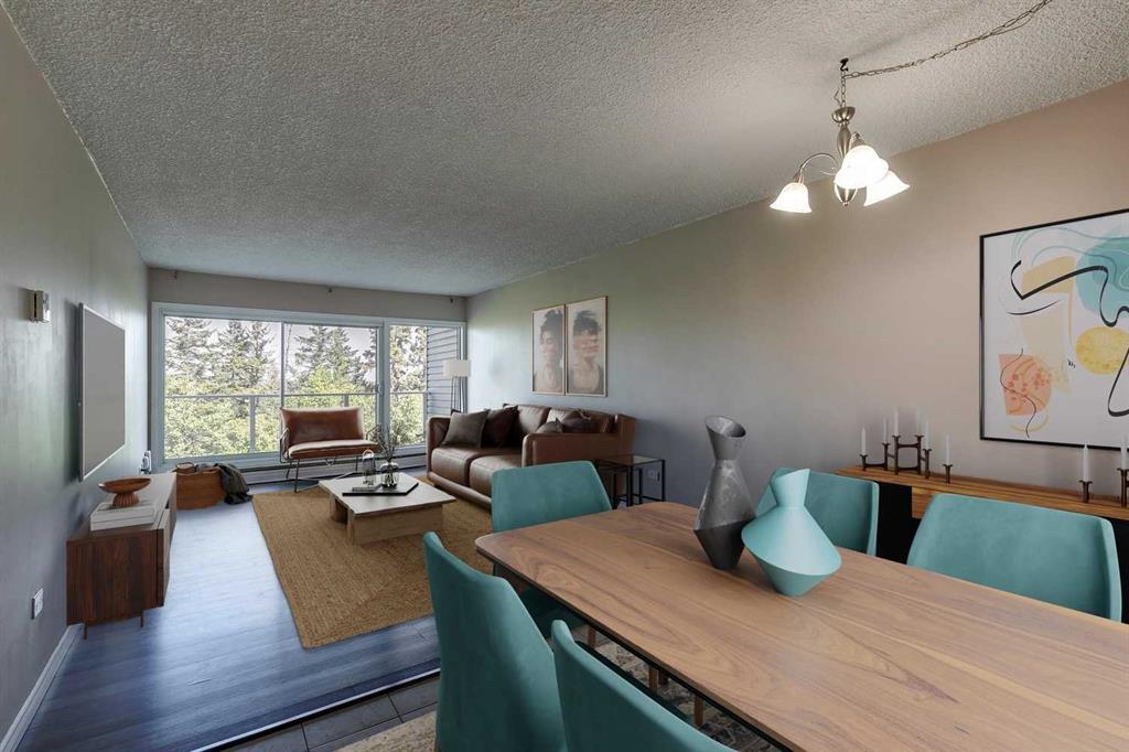 Bright and airy 2 bedroom condominium in a concrete building with views over the idyllic forested Douglas Fir escarpment. Nestled in desirable Spruce Cliff, surrounded by greenspace with proximity to all the action! This unit boasts great natural light with plenty of windows and huge balcony featuring a new membrane and glass railing, perfect for relaxing and looking out over both vast green space and a city vista. Living and dining room with large patio doors, lots of closet space, and a kitchen with upgraded appliances. OPTION TO ADD IN-SUITE LAUNDRY with board approval. Excellent layout for roommates or having guests. Meticulously maintained self-managed building with strong sense of community. Clean, common area laundry room on the lower level, plus secure outdoor bike storage. Assigned parking stall is conveniently located right outside the front door with ample street parking available for guests or a second vehicle. With unparalleled access to Douglas Fir and Bow River trails, situated above Shaganappi Golf Course, and just a short walk or run to Edworthy Off-leash Park. Easy access to Bow Trail, Sarcee, and other major thoroughfares. Enjoy proximity to both nature and the city: LRT, downtown, Westbrook Mall, the Bow River and river pathway system. A convenient commute to universities, hospitals, downtown, or to the mountains. A great find for investors or those looking to enter the market in a prime location.