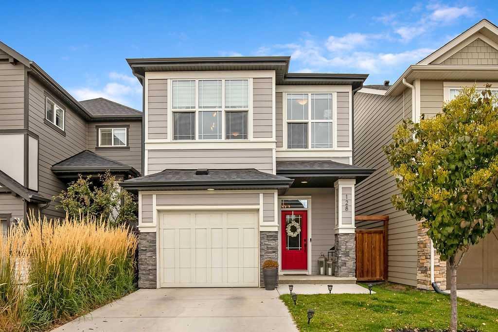 Located on a quiet street in Cranston's Riverstone, this stylish home has been lovingly maintained by original owners. With nearly 1800 sq ft of beautifully designed living spaces, central air-conditioning, front garage and a 130ft deep lot, this property is impressive. The main floor offers a spacious foyer (complete with closet and 2-pce bathroom), large open plan kitchen (with extra large island & cabinetry extending to the ceiling), dining area, family room (with brick-faced electric fireplace) and a conveniently placed built-in desk area. The upper level has been thoughtfully designed with a roomy, bright bonus room and laundry room separated from the 3 bedrooms. The primary bedroom is completed by a walk-in closet and luxurious 5pce ensuite featuring dual sinks, separate shower and soaker tub. The unfinished basement has lots of potential with loads of space for development. The west facing backyard has a deck with gas bbq hookup and a private lower patio. The location of this beautiful home allows for easy access to the entrance/exit of the community while still being close walking paths, parks and playgrounds along the Bow River! A fantastic home in a fantastic location!
