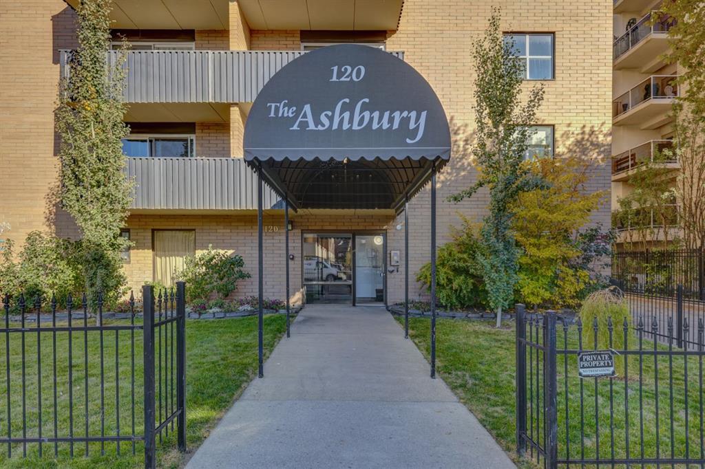 Enjoy the convenient location of this Beltline condo in The Ashbury! This 3rd floor corner unit in solid concrete construction offers loads of natural light pouring in through the south exposure. Exceptional finishes throughout this modern renovated unit. The open living room seamlessly blends into the kitchen, creating an expansive space perfect for both relaxation and entertainment. The heart of the area is a large island, which serves as a natural divider between the two spaces. The kitchen features ample cabinetry, quartz counters, black stainless steel appliances, pot lights adding a warm inviting glow, and open shelving. The bathroom exudes a luxurious, modern feel with its combination of marble and sleek grey cabinetry. The floors and walls feature large, glossy marble tiles with soft grey veining, creating a timeless, elegant backdrop. Two generous sized bedrooms - each with oversized closets, updated light fixtures & doors. Additional storage completes this functional condo, located inside of the unit and perfect for your extra gear! This central location just off 1st Street is complimented with many restaurants, shops & urban adventures. Come see for yourself to truly appreciate the pride of ownership in The Ashbury building!