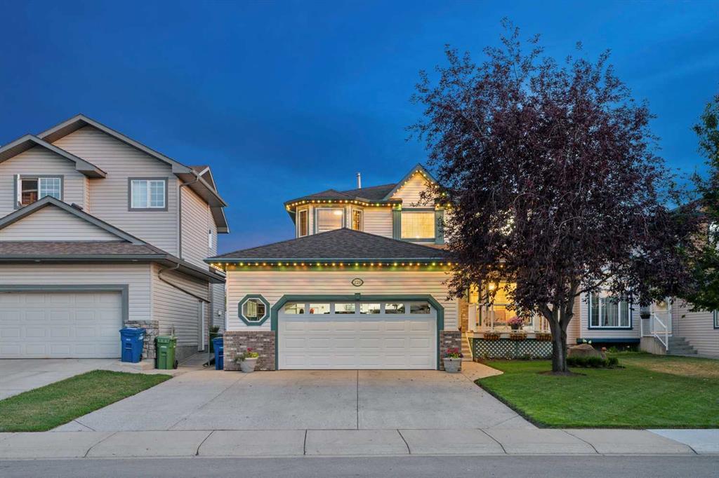 Situated on a quiet cul-de-sac on a highly desirable street, this gorgeous, original-owner WALKOUT home will capture your fancy from the moment you drive up. The custom exterior GEMSTONE lights dazzle in the evenings, and the oversized front veranda is perfect for enjoying sunsets while the kids ride their bikes. Inside this air-conditioned and pet-free home, you'll love the 18-foot-high foyer, the 9-foot ceiling throughout the main level, and the large windows that allow the natural light to pour in. Rich hardwood floors and neutral paint create a fantastic palette to stylize. The kitchen is simply stunning. Designed by Layne Kitchens in 2018, no expense has been spared. With full-height cabinetry, soft-close drawers, tiled backsplash, under cabinet lights, modern appliances including a GAS RANGE, and quartz counters, cooking meals will be a culinary experience! The dining room is part of the open-concept design with a door that leads to the large deck, enjoying views of the pristine backyard and green space beyond. The living room is warm and inviting with a modern linear gas fireplace. The front room is a versatile area that can be used as an office, a second living room, or a formal dining space. Main floor laundry and 2-piece bath (renovated in 2023) complete this spacious main level. Upstairs, the freshly painted primary suite is truly a space to relax and unwind. The large area is perfect for a king-sized bed and the ensuite is simply spectacular. Having been entirely updated in 2021, you will immediately feel a sense of calm upon entering. The heated floors, the large tiled shower with a rain shower head, and the freestanding soaker tub are the perfect antidote to a stressful day. Two separate vanities with a makeup station create functionality. Custom His & Her closets are hidden behind a sliding barn door, keeping any clutter tucked away. Two additional bedrooms and a 4-piece bath round out the upper level. The walkout basement is finished with a large open recreation room with a log gas fireplace and wiring for surround sound. There is also a 4th bedroom, a 3 piece bathroom, and a utility room with plenty of storage. Heading to the SOUTH backyard, you will appreciate the meticulous landscaping with mature trees and perennial flower gardens. The vinyl shed is great for storage, and the underground sprinklers add efficiency. The lovely pergola is perfect for summer nights watching the kids play on the beautiful playset. A gate leads out to the green space beyond where the kids can run their hearts out in the field or race to the playground. Additional updates include furnace (2013), hot water tank, shingles (2014), water softener (2021), carpeting and hardwood (2014), vacuflo, updated light fixtures, a gas line for a fire table on the lower patio, a 220 connection for a hot tub and Dacora switches. Parking is no problem with a triple-wide driveway and an oversized HEATED garage with a 220 panel for an electric vehicle.
