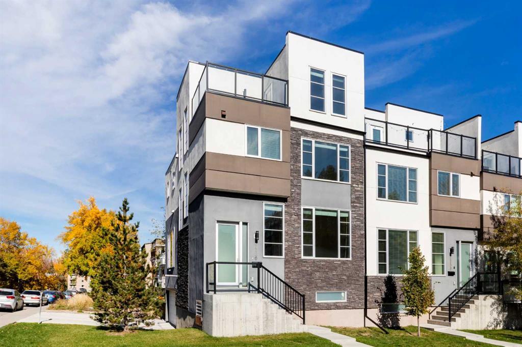 Great opportunity to call this inner city, amazing property yours! This is the first time this bright, corner unit has been offered for sale on then market. This trendy townhouse has a great layout with 1871 sq ft of living space above grade and includes 3 bedrooms, 3.5 bathrooms, a south-facing top level patio, and an underground assigned parking. Plenty of natural light in this corner unit with west-facing and south-facing windows. The spacious main floor features hardwood flooring and includes the living room with south-facing windows, kitchen with modern cabinetry, quartz counter tops, large island with breakfast bar seating, dining area, and powder room. On the second floor you will find the primary bedroom suite that accommodates a king size bed plus furniture and has a walk-in closet and 5 piece ensuite with dual vanity, tiled shower and soaker tub. The second bedroom, full bathroom, and laundry room with cabinets are also on the second floor. The third floor offers the 3rd bedroom with walk-in closet, full ensuite, and sunny corner balcony with south and west views. Don't need a 3rd bedroom? This space would also work great for a home office, gym or second living room space. The basement level has a storage area with shelves and provides direct access to your assigned parking stall in the heated parkade. There is also storage space within the parking stall for additional storage. This complex is in excellent condition and has been extremely well-maintained by the owner, who has owned all 5 units since the complex was built. Desirable Bankview location within steps of the community centre, tennis/pickleball courts, parks including the Bankview dog park, playgrounds, and the amenities located on 14th Street. Walking distance to 17th Ave and Marda Loop, this convenient location cannot be beat! 1738 25 Avenue SW in the complex is also for sale, be sure to visit both properties.