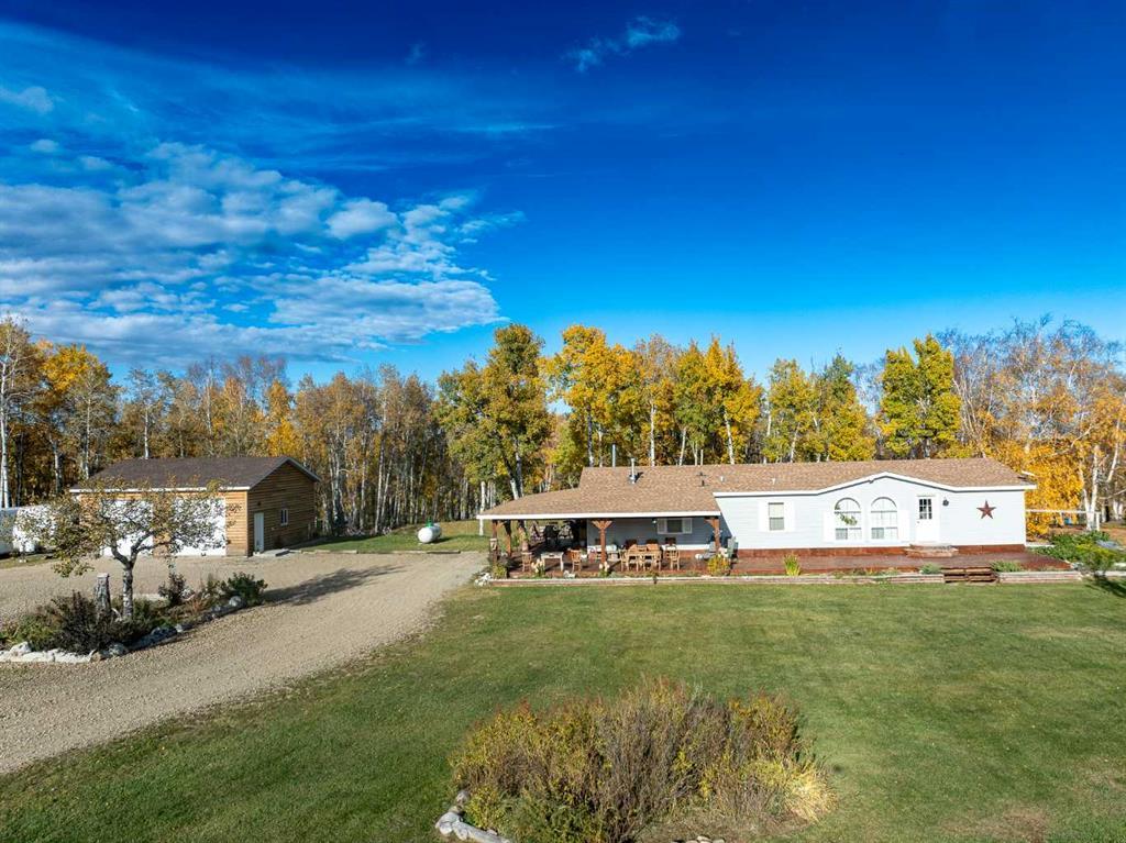 155 Acres, Hwy 761 Frontage. This lovely 1997 4 Bdrm/2 Bthrm Mobile offers 1,656 Sqft of living space, enjoying some recent renovations! You will appreciate relaxing & looking over your farm yard from the 12 ft Covered Wrap-Around Deck.The heated 28x32x14' insulated Shop boasts a concrete floor and the 36x36' Barn has a water Hydrant along with 9 pens including a Maternity pen & Barn CAM! With 2 convenient Auto-waterers, it is ready for your cattle and/or horses! Pasture & Greenfeed There is a POND & fun recreation area on the E side of the Qtr too The property has 2 Water wells, brags a 2nd fully serviced Site for an RV or 2nd Home AND a sweet Bonus of Surface Lease Revenue of $2,900! Did I mention the super convenient Location, approx 30 mins W of Innisfail to Stauffer Hwy 761 & N 1 km or 10 mins to Caroline, the Gateway to the West Country!!