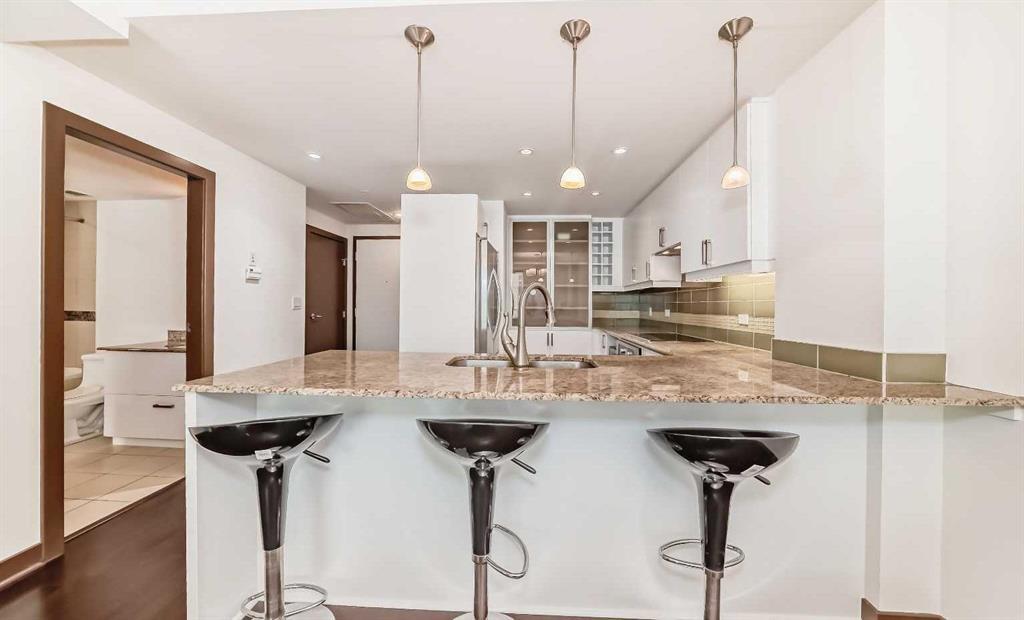 "Turnkey condo! All furniture is included in the sale, making this an ideal move-in-ready home. " Exquisite executive one-bedroom condo nestled in Calgary's vibrant downtown core. This meticulously crafted residence boasts high-end features including modern slab cabinets, engineered hardwood floors, glass tile accents, stainless steel appliances, a gas fireplace adorned with lit glass crystals, expansive floor-to-ceiling commercial-grade windows, granite countertops, Convenient in-suite laundry, balcony with a gas hook-up ideal for outdoor relaxation & barbecues, and the title secure underground heated parking. Enjoy unparalleled convenience with proximity to all amenities, complemented by concierge service, secure storage, bike storage, a well-equipped fitness room, and ample visitor parking. This is urban living at its finest.