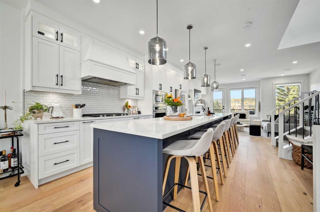 OPEN HOUSES -SAT Oct 19th & SUN Oct 20th from 1-4PM!! Step into sophisticated charm at this newly listed Calgary home, boasting a reverse walkout basement and captivating SouthWest views of the enchanting landscape from each of its three levels. Built by the renowned Chandan Homes, this property stands as a beacon of modern elegance married with functional design. The main level offers an open-concept floorplan connecting kitchen, living, and dining areas—an absolute marvel for those who entertain. Adorned with wide-panel engineered hardwood, the heart of the home boasts a balcony off the living room with a gas line. Adjacent to the dining area is access to the backyard and a double detached INSULATED garage. The central two-toned kitchen, designed to stir culinary inspiration, centers around a generous island, ready to accommodate your gatherings, large or small. The main living area includes a sleek gas fireplace surrounded by white brick, setting the stage for magical evenings. It might just compel you to host those parties you've always dreamed of. Venture upwards to the sanctuary of the upper level, where a luxuriously appointed primary bedroom awaits. Vaulted ceilings expand the space above, while built-in speakers set the tone for relaxation. A walk-in closet with custom wood shelving and an ensuite bathroom, featuring heated floors, a freestanding soaker tub, and a rainfall shower head, adds a spa-like experience right at home. Two additional bedrooms and a full bathroom ensure ample space for family or guests, while a laundry room equipped with modern conveniences rounds out this floor. The walkout basement features expansive 10-foot ceilings adorned with large windows for a lot of natural light and a serene white color palette. The recreation room, complete with a built-in entertainment unit, speaks the language of comfort and ease, featuring built-in speakers and a chic wet bar. A full bathroom and a cozy bedroom grace this floor, ensuring privacy and retreat. A/C installed last year. Situated in a vibrant community, this home offers the best of an inner-city lifestyle. Enjoy proximity to the Bow River pathway systems, University of Calgary, and a short drive to downtown—all while being conveniently located for quick escapes to the mountains. Don't wait! Call today for more information!