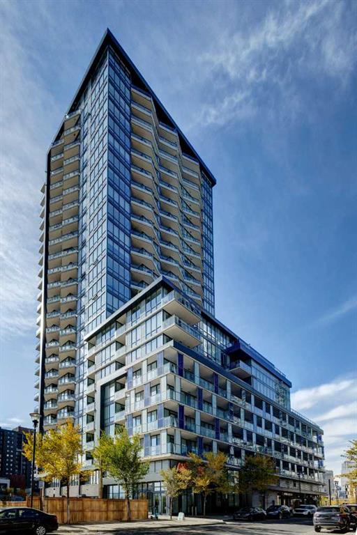 PRICE REDUCED!!! Welcome home to your modern 1-Bed/Den Condo (Den with glass sliding doors currently used as an office that can be easily used as a guest bedroom) + 1-4pc bath, IN-SUITE LAUNDRY room with extra storage, underground parking, separate storage locker (large metal cage), with a quiet West Facing Patio, in the desirable ‘VERVE’ Complex by FRAM+Slokker in Calgary’s coveted community of Downtown East Village! A Rare Pet friendly building with board approval for Cats & Dogs up to a Max of 2. This immaculate and BRIGHT (loads of natural light) open concept condo with laminate flooring throughout, leads to the kitchen living room combination (maximizing space), the modern kitchen with all the appliances you could need, has a good sized kitchen island with Quartz-Countertop (that maximizes space with it’s smart design), leads to your open concept living room, that steps out to a good-sized COVERED BALCONY, and looks over a quite street and open parking lot that provides unobstructed views of Downtowns Bow Tower & Studio Bell’s National Music Centre. This spectacular condo located in Downtown’s East Village, is perfect for those who enjoy walking to work, quick access to the LRT, and is just steps to Calgary’s Historic Simmons Building (that houses Phil & Sebastian for your morning coffee, Sidewalk Citizen Bakery, and Charbar). And for all the FOODIES the location is just steps to Nupo (offering an omakase sushi experience), a quick walk to Fortuna’s Row (Latin American inspired dining located in a century-old 10,000 sq/ft warehouse), King Edward Hotel for live music, and Parlour Ice Cream for those hot summer days. Even more, bask in the convenient location by enjoying The award-winning Jack & Jean Leslie RiverWalk (provides dedicated pedestrian and cycle lanes along the edges of the Bow and Elbow rivers), Crossroads Community Garden, St. Patrick’s Island, The Bounce Games Park, 5th Street Square( where you will see Dennis Oppenheim’s inverted “Device to Root Out Evil.”), Calgary’s Flagship New Central Library (absolutely stunning design not to be missed), Superstore for your daily groceries, and all the amenities that Downtown’s vibrant East Village has to offer (I can’t list them ALL!). Just move in and enjoy your new Downtown East Village Lifestyle. And did I mention the building’s desirable amenities such as the 6th floor Gym & LARGE Party Room/Lounge area with Patio/BBQs/ Reading area/Ping Pong Table + Roof Top patio on 25th floor! View this home today, before it’s gone!!!