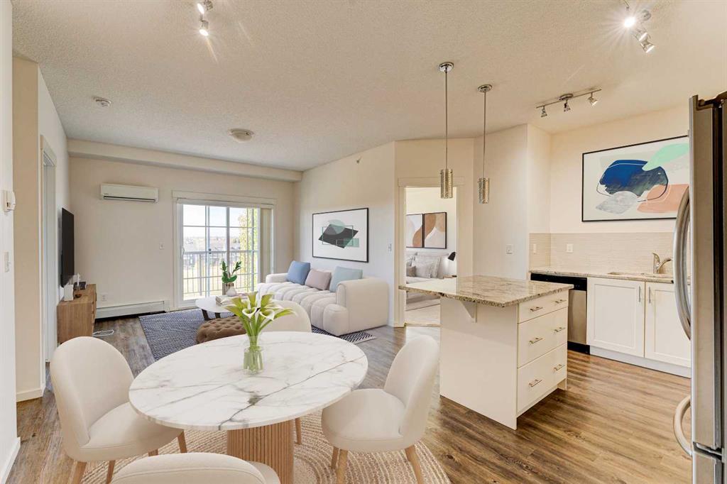 2 BEDROOMS | 2 BATHROOMS | 800 SQFT | TOP FLOOR | MOUNTAIN VIEWS | TITLED UNDERGROUND PARKING | JUST PAINTED | Welcome to this freshly painted bright and spacious open concept condo in Copperfield! The inviting floor plan features a large kitchen with gorgeous granite counters, island with breakfast bar and plenty of cupboard and counter space. Just off the kitchen, enjoy the attached dining area and living room with large windows allowing an abundance of natural light into the space. Just off the living room you will enjoy the spacious deck overlooking the park across the street and beautiful mountain views. The condo includes 2 master bedrooms both equipped with walkthrough closets and ensuite bathrooms with granite counters. The primary master features a 3-piece ensuite and the secondary master features a 4-piece ensuite that is also accessible from the living area. You will enjoy having the convenience of insuite-laundry and extra storage in your front entry closet. This condo also includes air conditioning, a titled storage locker and a titled underground parking stall. Enjoy the convenience of being close to parks, playgrounds, shopping and schools and the South Health Campus. Don't miss out on your opportunity to own this desirable unit and make it your own. Reach out today! Photos are virtually staged and are not an accurate depiction of current property.