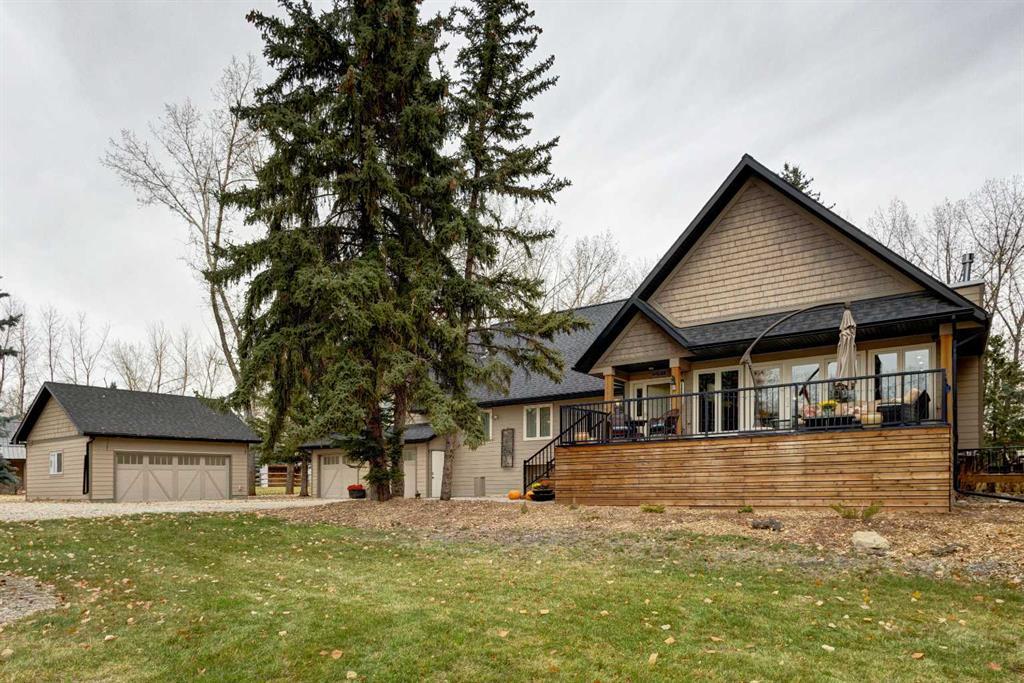 This home is truly where luxury meets modern country living, while still offering a convenient lifestyle close to amenities. Just minutes from Okotoks and with quick and easy access to Calgary, it provides the most convenient location while enjoying the tranquility of country living. From when you enter along the tree-lined driveway you will appreciate the privacy and picturesque beauty this property offers as it is surrounded by lush trees and low maintenance landscaping. Its well-appointed layout and distinctive architectural features create a space you want to call home. The chef’s kitchen has premium appliances, ample storage, and loads of countertop space. It seamlessly connects to the flex, dining, and living rooms, making it ideal for entertaining. The king-sized primary bedroom on the main level has a retreat-like feel with its fireplace and sitting area, walk-in closet, and a lavish spa-like ensuite. Additional features on the main level include a 3-season sunroom boasting in-floor heating, a full-sized laundry room with pantry storage, a 2-pc powder room, and soaring vaulted ceilings with wood beams. Above the attached double garage is a generous family room that fills with natural light. The lower level has been fully reconstructed. It includes a rec room, a wet bar, two full-sized bedrooms with ensuites, and a 4th bedroom/flex room. Additionally, within the 5+ acres are a heated double detached garage, a large two-stall barn, 2 paddocks with shelters, an outdoor sand riding arena, a fenced veggie garden, and three outdoor living spaces. There is a long list of renovations and upgrades, including an electric gate at the entrance, two newer furnaces and ducting, a tankless water heater, water filtration systems, and updated plumbing, to name a few. Many details and features make this home and its location extraordinary, everything from having a lovely view from every window, including the Rocky Mountains out the main living area, to the highest quality and the true comforts that make a house a home.
