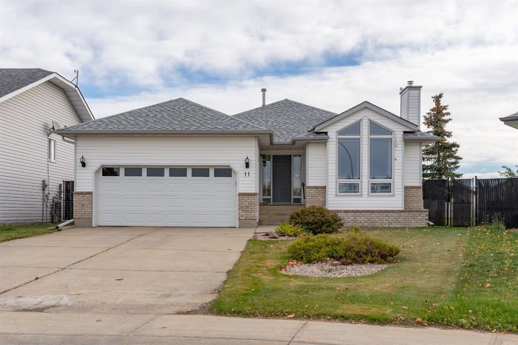 Welcome Home to 11 Lafond Dr in Tofield. This early 90's built home is mint with a great location and oversized yard. Walking distance to 2 schools, Tofield Arena, Spray Park and located directly across from a playground and green space. This quiet cul de sac gives an extra large, fully fenced, pie shaped lot with back lane RV Access plus a Double Attached Heated Garage and Single Detached Rear Garage with gas r/i. Quality Bungalow with wonderful features - hardwood flooring, gas fireplace, triple pane windows, AC, vaulted living room ceiling and it comes fully finished! Large living room with bright floor to ceiling windows and shares in space with a dining room. Pass through to the kitchen with beautiful oak cabinetry, coffee bar/pantry area plus a dinette with full view in the back yard. 2 main floor bedrooms - Primary sees large double closets with 2pc ensuite - 2nd has roughed in laundry for future use if needs - all tied together with a 4pc main bath. Basement comes fully finished with a large family room with r/i bar area, 2 more bedrooms, 3pc bath and good utility room with laundry. Attached Double Garage wth Radiant Heat, hot/cold taps and central vac. Large yard with handy shed, full chain link fencing, raised 14x21/12x12 no maintenance deck, RV option and a 14x23 detached garage with gas rough-in. This incredible home is available with immediate possession!