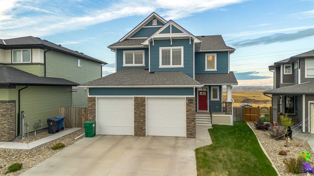 A fully custom 2 storey in Legacy Ridge that has the views, the space and the upgrades you've been looking for! A quiet cul-de-sac hosts this 2,245 sq/ft home, tucked away near the Alexander Wilderness Park, Hardiville Pond, the Galt Mine Historic Site and of course, our signature coulees! Entering this home you will be WOWED by the full-width west facing windows that frame the incredible view, only to be highlighted by the fact that all of these west facing windows are triple pane, so even though you get that gorgeous western sun, you aren't paying for it! The living room is centred around a gas fireplace that is flanked with custom bookshelves, a designated dining area and then an expanded two-tone kitchen that has a huge quartz island, gas stove, walk-in pantry and coffee bar station! The back deck covers the entire width of the back of the home and includes a natural gas hook up for your BBQ! Convenient half bathroom on the main floor that is just off of the mudroom from your double car garage! The second floor greets you with a bonus living space that again overlooks the coulees. There's 2 bedrooms that share a 4 piece bathroom with separation from the primary suite, a laundry closet that makes doing laundry a breeze and finally, the primary: a spacious, tranquil room that has a tray ceiling, 5 piece ensuite, huge walk-in closet and yet again, with incredible views! The walk-out basement has yet another 2 bedrooms, 4 piece bathroom, storage space, well sized family room and a covered patio just outside the exterior doors. The backyard is BIG, with direct access to the coulees. It is fully landscaped, irrigated and fenced, there's permanent lighting as well, so there truly is nothing left to do!