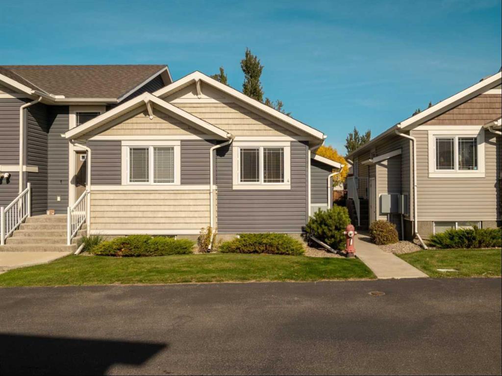Stunning Updated Bungalow Style End Unit in Legacy Crossing! Outside enjoy your single garage and the deck off the living area to enjoy the outdoors. Inside you'll find updated paint, new flooring, updated counter tops. The vaulted ceilings give this home an open feel, your kitchen offers plenty of storage, stainless steel appliances and plenty of room to entertain. The main floor features a large primary with walk-in-closet and access to the 4 PC bathroom. There is also second bedroom/office. One of the closets on the main level is also plumbed if you choose to move the laundry to the main floor. Downstairs you will find a large rec room, third bedroom and another full 4 PC bathroom along with plenty of storage and Laundry. Your grounds maintenance and snow removal are also covered for $229/month.