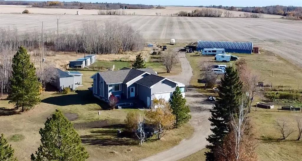 Discover this meticulously maintained 4-bedroom, 3-bathroom bungalow, nestled on an expansive 9.91-acre property just 10 minutes east of Fairview. This beautiful family home combines modern comforts with serene country charm, offering ample space both inside and out. Step inside and be greeted by abundant natural light, filling an open floorplan designed for comfortable living. The charming living room is perfect for family gatherings or quiet evenings. The dining area, adjacent to the kitchen, provides convenient access to the back deck, where you can enjoy the tranquility of the surrounding landscape. The heart of the home is the thoughtfully designed kitchen, which boasts modern stainless steel appliances, an island perfect for meal prep or casual dining, and an induction stovetop with a built-in oven. With ample cabinet space, this kitchen caters to both the practical and aesthetic needs of any home chef. The main floor includes a luxurious master suite, complete with a walk-in closet featuring built-in organizers. The five-piece ensuite bathroom provides a spa-like experience, with a soothing soaker tub and elegant fixtures. An additional bedroom and a 1/2 bathroom are also on this level, along with a desirable main-floor laundry, adding convenience to your daily routine. The lower level offers a fully suited living space, ideal for extended family or guests. This area includes a generous family/rec room, two additional bedrooms, a 3-piece bathroom, and a cold storage room. The in-floor heating ensures comfort year-round, while the separate entrance enhances privacy and accessibility. A central vacuum system throughout the home adds an extra layer of convenience. The property is beautifully landscaped and features a 21 x 20 attached heated garage with epoxy floors. For those with a green thumb, the fenced garden and raised beds with irrigation from the dugout offer plenty of space to cultivate fresh produce. Animal lovers will appreciate the partially fenced area, which is ideal for pets or small livestock, and includes a chicken coop and a bunny pen. Additional features include a fire pit, perfect for evening relaxation, and a substantial 4,500-gallon cistern. This turnkey property is ready for its new owners to make memories with, blending comfort, functionality, and endless possibilities for outdoor enjoyment. Experience the perfect combination of rural tranquility and modern living with this exceptional home.