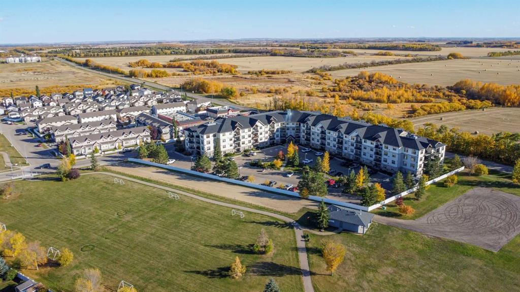 IMMEDIATE POSSESSION AVAILABLE ~ 2 BEDROOM + DEN, 2 BATHROOM CONDO IN LAKEWAY LANDING ~ COVERED SOUTH FACING BALCONY ~ 1 HEATED UNDERGROUND PARKING STALL & 1 POWERED SURFACE STALL ~ Step into a stylishly designed lobby, where secure entry doors lead you to convenient elevators that take you to this second level unit ~ Open concept layout enhanced by high ceilings and expansive south facing windows creates an inviting sense of spaciousness ~ The stunning kitchen boasts rich dark stained cabinetry, expansive countertops with a raised eating bar, full tile backsplash, and outfitted with five stainless steel appliances, including a bar fridge ~ The kitchen flows seamlessly into the dining area, making it perfect for hosting large gatherings with ease ~ The living room offers stunning views through large south-facing windows, and a cozy corner gas fireplace serves as the centrepiece, with space above for a TV, plant shelf or display ~ A garden door leads out to a sunny, covered south-facing deck, complete with a gas line for a BBQ or patio heater, perfect for outdoor entertaining ~ The primary bedroom offers plenty of space to comfortably accommodate a king-sized bed and additional furniture and offers more views through a large south-facing window ~ A walk-through closet with built-in organizers leads to a luxurious 4-piece ensuite, adding both convenience and style ~ Second bedroom is also a generous size and located across from a 4 piece bathroom making this an excellent space for roommates, kids or guests ~ The spacious den, currently utilized as a home office, offers exceptional versatility and can easily adapt to suit your needs ~ The in-unit laundry is located in it's own room just off the entry and offers added convenience with extra storage space, complete with built-in shelving ~ This well managed condo offers a range of amenities, including a fitness facility, two elevators, secure underground parking, a serene courtyard, and additional surface and visitor parking for convenience ~ Perfectly situated next to a shopping plaza on one side and green spaces, playgrounds, and sports fields on the other, this location offers a walking trail that winds through town, with easy access to schools, shopping, and downtown, you'll also enjoy the year round activities that Sylvan Lake has to offer!