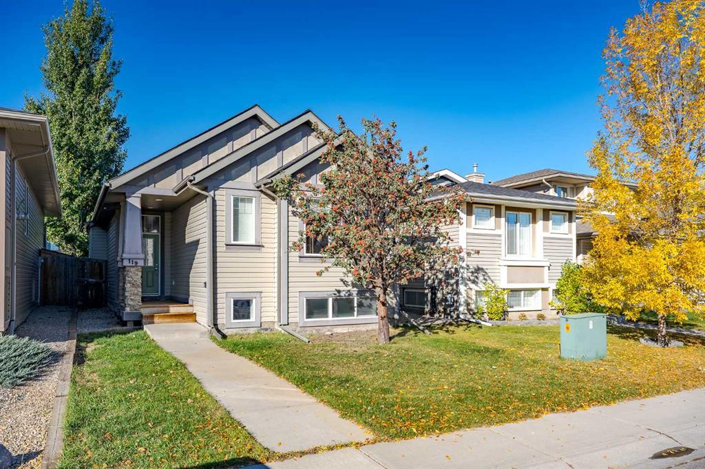 All the work's been done, and clean as a whistle, just move on in! Very nicely renovated bi-level in a family-friendly neighborhood, close to shopping, schools, and a playground. As you enter the home you are greeted by the spacious front entry with brand new vinyl plank flooring throughout the home, and an inviting layout on the main floor with vaulted ceiling and open plan with spacious kitchen (w/island and pantry), dining area with rear deck access, and living room with fireplace. Primary bedroom is down the hallway with 4 piece ensuite and large WIC, and second bedroom and 4-piece main bath. Vinyl plank continues into the lower level of the home with a spacious family room, a large bedroom, a den/home office with window (exitws under rear deck), and another 4-piece bath. There's also a nice size laundry room utility/furnace room and plenty of storage. Step outside on the main level rear deck and stairs down to a fully fenced low maintenance backyard with storage shed and access to the double detached garage off the paved rear laneway. This home has been well maintained and nicely appointed. A quick commute to Calgary and Balzac Mall, and easy access to a host of amenities in Airdrie. Don't miss out on the opportunity to make this exceptional property your own — Come and see for yourself!