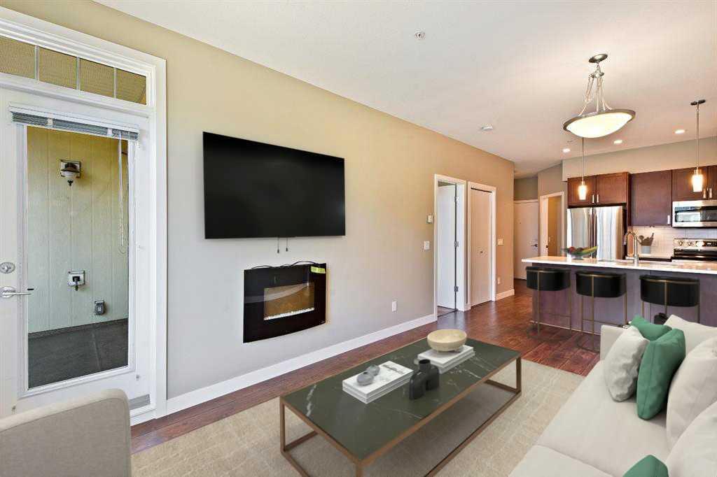 STUNNING 1 BEDROOM + SMALL DEN CONDO ACROSS FROM SOUTH HEALTH CAMPUS HOSPITAL. Prime location and LAKE PRIVELEGES. Experience premier living in the heart of Auburn Bay with this 1-bedroom, 1-bathroom + den condo, perfect for young professionals and investors alike. Situated in the desirable “Stonecroft at Auburn Bay,” this meticulously maintained 3rd-floor unit offers a blend of modern elegance and convenience. Boasting a spacious open-concept floor plan with 9’ ceilings, this home features a classic kitchen equipped with stainless steel appliances, a quartz countertop, a subway tile backsplash, pot lights, pendant lighting, a flush eating bar, and dark cabinetry complemented by hand-scraped engineered hardwood flooring. The kitchen seamlessly flows into the dining/living room, where a cozy and stylish electric fireplace creates a warm ambiance. Step out onto your private west-facing balcony, complete with a BBQgas hookup, and enjoy the sunset views. The EXPANSIVE PRIMARY SUITE includes a walk-through closet and a spacious dual-entry full bath. The versatile DEN offers additional storage or living space, ideal for a small office or extra storage. IN SUITE LAUNDRY with upgraded washer and dryer ensures added convenience. Additional features includes 1 INDOOR ASSIGNED PARKING and a SEPERATE STORAGE LOCKER, providing ample space for all your belongings. This premium condo is just across the street from SOUTH HEALTH CAMPUS, making it an ideal choice for healthcare professionals. The building’s prime location offers easy access to the Seton market area, YMCA, Auburn Lake, shopping, dining, transit, and Starbucks. With fantastic value and exceptional amenities, this home is perfect for first-time buyers and savvy investors. Welcome to your new home in Auburn Bay! Quick Possession Available.