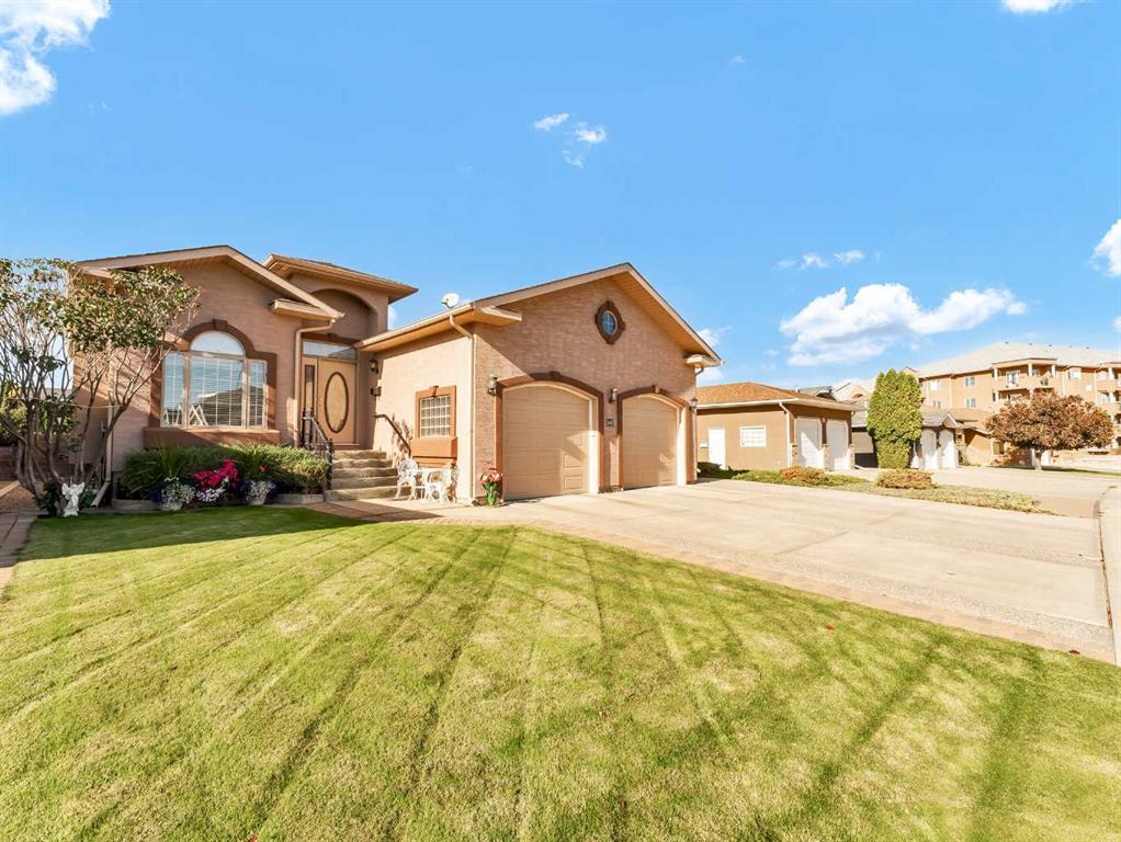 LOCATION, LOCATION, LOCATION! A fantastic opportunity to own this well cared for 1506 sqft 3 bedroom (1+2+main floor den) 3 bath BUNGALOW that is close to shopping, banks, clinics, restaurants and so much more! Attached 25x26.6 garage is insulated and heated! Pride of ownership shows throughout the open concept boasting 10’ ceilings and an easy flow throughout. The office/den is just off the main foyer that leads to the large kitchen with loads of cupboards, GRANITE COUNTERTOPS, wraparound breakfast bar, stainless steel appliances and a walk-in pantry! The dining area has lots of room for entertaining, and offers a built in area for china cabinet, and a door to the covered maintenance free deck. BONUS is the 3 sided fireplace that can be viewed from the dining area as well as the spacious living room. HUGE Primary Bedroom offers a large walk-in closet (5’x10’), and a 4 pc ensuite that includes a jetted tub, and a walk in shower. Completing this level is a 2pc powder room and a MAIN FLOOR LAUNDRY with lots of cabinets with countertop for folding and is also a great mudroom area. The basement is host to a HUGE family and rec room and sports a wet bar! There are 2 LARGE bedrooms, a 4 pc bath, as well as a good sized storage room. The peaceful and beautifully landscaped yard is complete with underground sprinklers, so you can sit back on the maintenance free covered deck, or the patio with paving stones and just enjoy the privacy that the beautiful brick fence allows. Central vac is only 3 years old, and the “Acrylic Stucco” was done in 2016. Excellent value ! CALL TODAY!