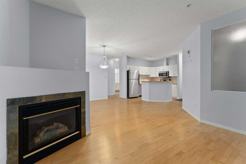 Your new home under $250,000! Centrally located on 12 Ave, this home offers over 700 sq ft of living space, plus a west-facing balcony that fills the unit with natural light in the mornings. The open-concept layout features 9 FT CEILINGS , hardwood floors with in-floor heating throughout, and a cozy gas fireplace to keep you warm during winter. The kitchen cabinets have been refreshed with a new coat of paint, giving the space a modern feel. The primary bedroom is tucked away conveniently next to the 4-piece bathroom and the stacked washer and dryer, making daily living a breeze. The second small bedroom, though compact, comfortably accommodates a bed or a loveseat pull-out sofa and dresser, making it perfect as a guest room, office, TV room, or even a home gym—so many possibilities! This condo also includes UNDERGROUND PARKING. The stall is conveniently located just in front of your own STORAGE LOCKER space. The building offers 24-hour security surveillance, a double-door entrance, and an accessible ramp. Please note, short-term rentals are not permitted. Book a showing with your favorite realtor today!