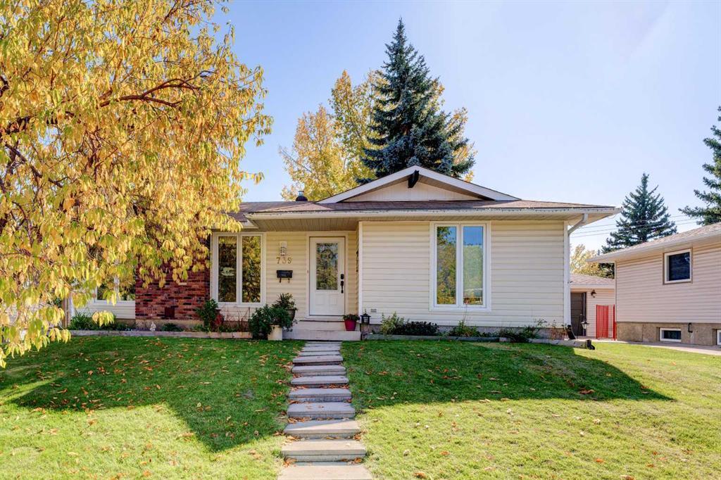 Welcome to 739 130th Avenue SW! This fully developed 4 bed, 3 bath bungalow offers over 2000 square feet of developed space and sits on a 55' X110' South backing lot that sides a walking path in the ever-popular community of Canyon Meadows! The main floor features a spacious open living room with a wood-burning fireplace, dining area, and a bright kitchen with large south-facing windows, an abundance of cabinets, and hardwood floors. Head down the hall to 3 good-sized bedrooms that include a primary bedroom with direct access to your back deck through the updated patio doors, and is finished with a 2 piece ensuite. Finishing out the main level is an additional 4-piece main bath. The fully developed lower level is separated from the main floor with direct access through a back entrance! Currently finished with an open rec space including an additional fireplace, a 4th bedroom with updated proper egress window, 2-piece bath, laundry room, and separate storage room. This home has an excellent floor plan with great bones, and is ideally located just steps to transit and the LRT line, numerous parks and schools, and is just a short walk to the coveted Fish Creek Park, making it perfect for a growing family! Notable updates over the years include all windows throughout and mechanical. Book your showing today to see the possibilities this home offers!