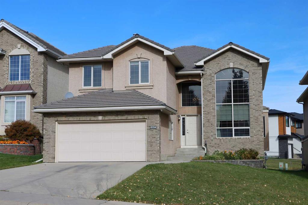 Across from the golf course & backing onto a greenbelt is this wonderful home in the highly sought-after estate neighbourhood of Hamptons. Offering 3 levels of upscale living, this fully finished Janssen Homes two storey enjoys a total of 5 bedrooms + den, beautiful kitchen with granite counters & stainless steel appliances, 3.5 bathrooms & walkup level with oversized windows. Drenched in warm natural light, this outstanding home has a sunny Southwest-facing living room with soaring 17ft ceilings, elegant formal dining room, open concept dining nook & sleek kitchen with walk-in pantry, tile floors & the appliances include Whirlpool gas stove/convection oven. The family room has 17ft ceilings, built-in cabinets & 3-sided gas fireplace. Total of 4 bedrooms up highlighted by the expansive owners' retreat with sitting area & views of the greenbelt, big walk-in closet & jetted tub ensuite with separate shower & tile floors. The finished walkup level - with large windows, is finished with 5th bedroom & another full bath, storage/utility room & games/rec room with access up to the backyard. Main floor laundry with built-in cabinets & GE washer/dryer, dedicated home office with French doors, Hunter Douglas blinds, 2 furnaces, Ecobee thermostat, concrete tile roof & great-sized backyard deck with gas BBQ line. A truly fantastic home in this popular Northwest Calgary golf course community, only a few short minutes to the golf course clubhouse & bus stops, Hamptons School & area shopping, with quick & easy access to University of Calgary & Foothills Medical Centre, major retail centres & downtown.
