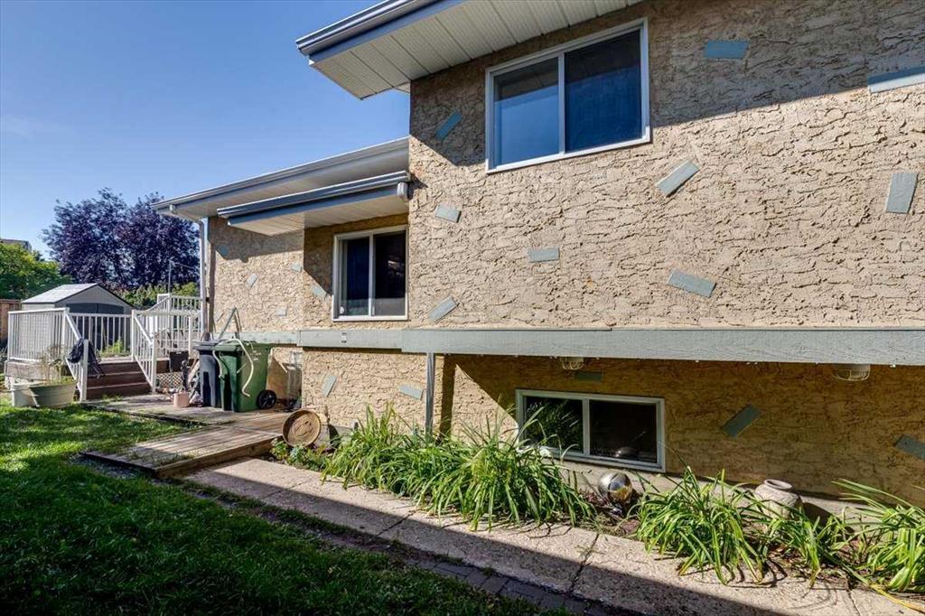 5 Bedroom, 3 Bathroom Bi-Level in Riverside is ready for a new family! The main floor features an open Kitchen-Dining-Living Room area with unique feature wall, large South facing windows to bring in plenty of light, access to the huge 2 tiered deck out back, 3 Bedrooms, an upgraded 3 piece bathroom with huge walk-in shower, and Primary Bedroom with 2 piece ensuite bathroom. Downstairs you'll find a couple more bedrooms, 3 piece bathroom, a large recreation room, along with plenty of space for storage. The back yard features a two tiered deck, fire pit, and 2 garden sheds. The big ticket items include an original Furnace & Windows, H/W tank upgraded around 2020, S/S appliances upgraded in 2015, Seller believes the shingles were upgraded around 2010, new Fencing on the South & East side, but not the West fence. Underneath the deck is enclosed as a pet run. This is a zero lot line property, with Easement agreement on Title.