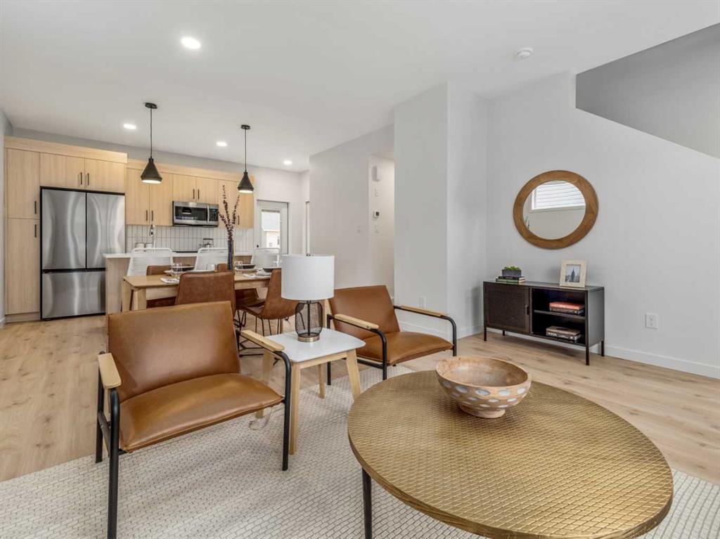 The "Leo" By Avonlea Homes. Super modern town homes located close to Legacy Park. FULLY FENCED AND LANDSCAPED,NO CONDO FEES. Wide open floor plans, High (painted)ceilings on the main floor, no more Texture. Quartz counter tops, tiled floors in all bathrooms, 2 or 3 bedrooms models. This one is a 2 bedroom model with dual masters and dual ensuites. Convenience of laundry upstairs as well. Single parking pad in front double parking pad in back. This particular unit is the middle unit, end units are for sale as well at a different price point. Excellent location close to all the amenities the 73 ACRE Legacy Park has to offer. Home is virtually staged. New Home Warranty.
