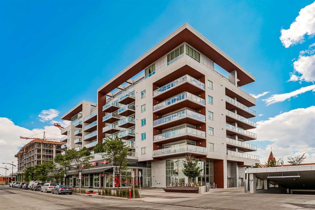 Experience unparalleled luxury in the exquisite Gateway Condominium Development nestled in the vibrant community of West District. This home has an allure of upgrades to ensure convenience and comfort. As you walk in you will immediately be captivated by the HERRINGBONE luxury vinyl plank flooring, 9-FOOT ceilings and designer colors throughout. The kitchen is a chef's dream, designed with meticulous attention to detail. The centrepiece is a stunning 10-FOOT island, featuring upgraded storage with extra cupboard space with a set of three drawers for all your culinary essentials. Premium stainless-steel appliances include a gas range, built-in electric oven, and an INTEGRATED refrigerator + dishwasher for a seamless, custom look. The top-of-the-line composite sink comes equipped with a high-quality, ultra-quiet triple-blade garburator and a water filtration system, ensuring both functionality and elegance in your cooking space. Adjacent to the kitchen is the impressive den area, ideal for a business professional. The den is accessed through elegant GLASS DOORS, opening into a spacious and versatile room that can be tailored to meet your needs. Whether you envision a refined home office, a private study, or a stylish meeting space, this den provides the ideal setting. The built-in wine rack adds a touch of luxury and convenience, making it easy to entertain guests or unwind after a long day. With ample space for a large desk, shelving, and additional seating, you can create a productive and comfortable environment that reflects your professional lifestyle. One of the standout features of this unit is the inviting OPEN FLOOR PLAN that seamlessly connects the kitchen, dining, and living areas, creating a perfect space for entertaining family and friends. The SOUTH-facing orientation floods the unit with abundant natural light throughout the day, enhancing the warm and welcoming atmosphere. The primary bedroom is a spacious retreat featuring a walk-through closet and a lavish 4-piece ensuite. Indulge in the double vanities, enjoy the sleek glass stand-up shower, and admire the beautiful tiling throughout, all designed to provide a serene and sophisticated ambiance. The SOUTH-facing balcony is also another huge highlight as it is extremely PRIVATE and offers breathtaking, unobstructed panoramic views of the Rocky Mountains. Built with steel & concrete, this low-maintenance residence is perfect for working professionals or retirees seeking a blend of comfort and convenience. The unit includes an underground parking space, ensuring your vehicle is always secure as well as 3 ADDITIONAL STORAGE UNITS (Valued at over $10,000). Building amenities elevate your living experience with an Owner's Lounge, a rooftop patio, & underground parkade. Additional conveniences include MOTORIZED BLINDS in the living room and bedroom, bike storage, lobby concierge, and ground-level restaurants, shops, plus health/wellness studios.
