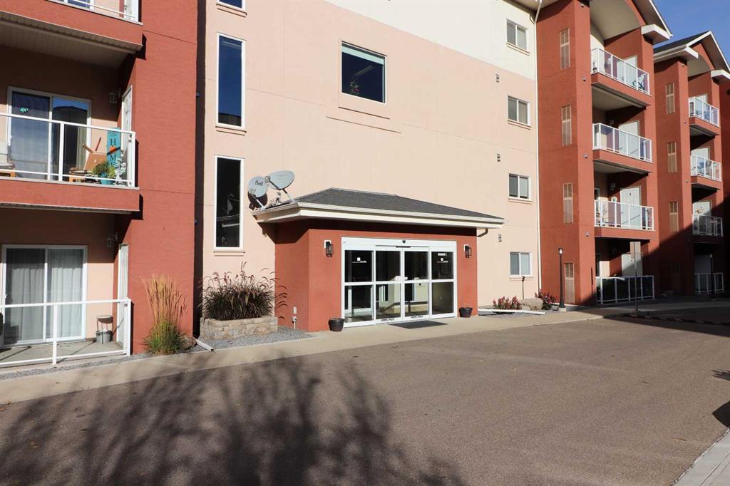 This condo shows like new! Carpets and paint were redone in 2023. It features a spacious kitchen with granite counter tops, an open concept living that leads to your covered deck and a cozy corner fireplace. The bedroom is spacious with a large walk in closet. This condo comes with two storage spaces, one on the deck and one in front of your parking space. Utilities are included in the condo fees. This unit is located right next to the “the lounge” which is great for social gatherings and has a dance floor, games tables, comfy sofas, and a kitchen that is available for condo events or to reserve for your private function. Note, this unit is also very close to the elevator and your underground parking spot.