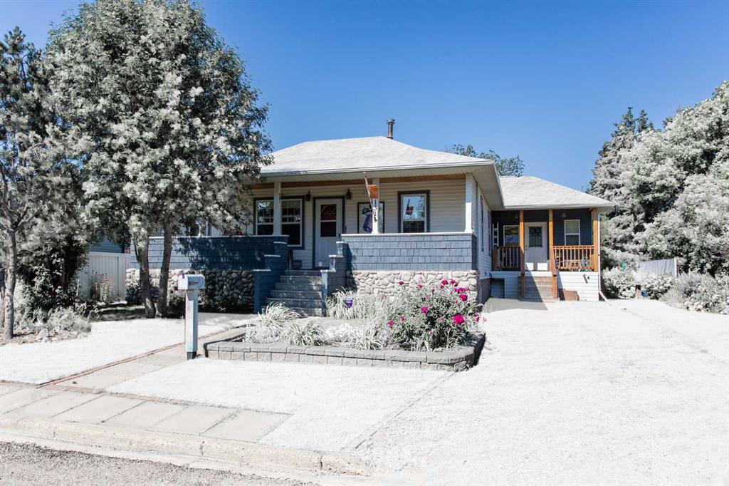 Prepare to be Wowed! This little bungalow has been extended to over 1500 square feet, updated and improved over the years, and now perfectly blends the charm of its era with modern functionality. Starting with three beautiful covered verandahs facing both east and west, you enter the home to hardwood floors, 9 foot ceilings, sparkling chandeliers, vinyl windows and solid core doors. There are a total of three bedrooms on the main floor, the front bedroom has been fitted with built-in shelving and makes a lovely office, and the primary bedroom has been extended and given a bay window facing the back yard. There is a dedicated formal dining room with extensive storage. And the kitchen is incredible - a huge island with gas stove, additional sink and storage, a wall oven, walk-in pantry, and miles of custom cabinetry and granite countertops. There is a quaint informal eating area, a half bath, and access to the yard. The basement is only partly finished, but has two furnaces, two sump pumps, updated electrical, and 8 foot ceilings. The yard is a real oasis, with beautiful water features, raised decks and walkways and thriving flower gardens. Top it off with a huge 30x40 heated garage with workshop and additional RV parking. What a full package! This one is a must see property.