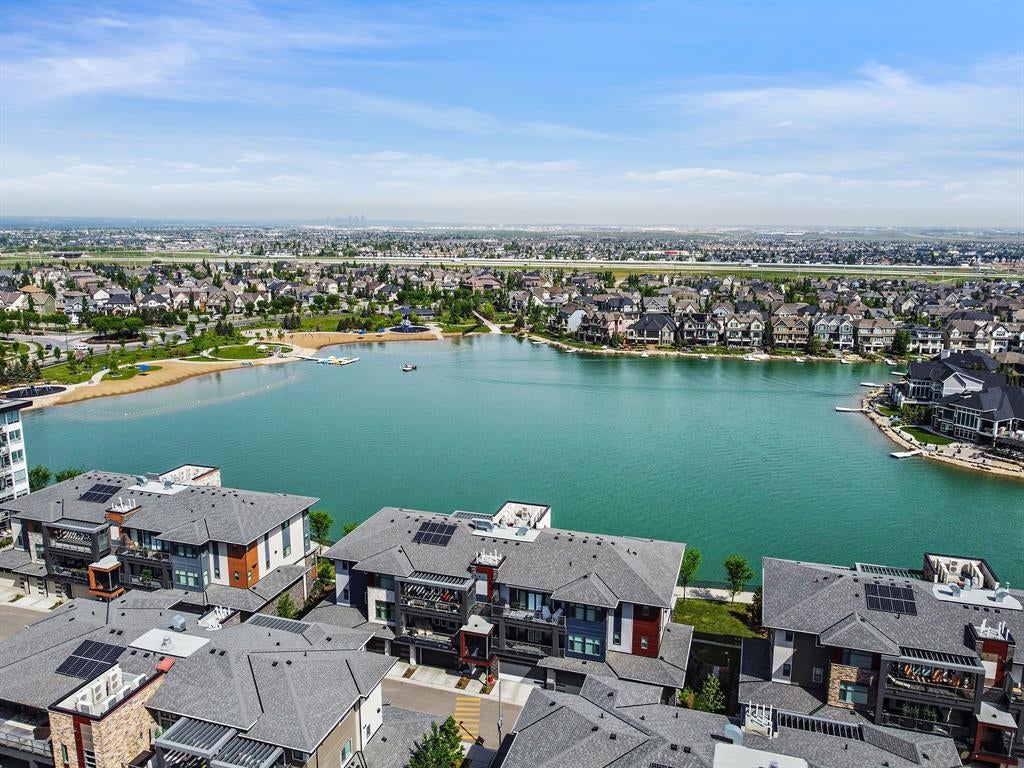 WESTMAN VILLAGE - Resort Living on Lake Mahogany. Jayman BUILT community with the best location, directly adjacent to Calgary’s largest lake, the last of its kind, award-winning community of Mahogany. Luxurious 3 bedroom / 4 bathroom home with fantastic views from both levels overlooking Mahogany Lake. Private WALK OUT home with 2400 sq ft of living space and 1500 sq ft of exclusive outdoor covered balcony area. SEVERAL UPGRADES - Gorgeous kitchen Cabinet gloss white pallet, Stainless steel appliances with a gas cooktop and built-in ovens, closet organizers, A/C, high-end light & plumbing fixtures. BONUS: same-level access to your own double attached garage! Impressive landscaping matches the picturesque views from your future backyard, with fountains, park benches, bridges, pathways & raised planters. The 40,000 sf amenity center speaks for itself. Activities are available for all interests & hobbies. Including a swimming pool w/ a 2-story water slide, golf simulator, fitness center, movie theatre & so much more... 24-hour, 7-day-a-week security & concierge service. Your new home features open floor plans, maximizing your lifestyle experience with Jayman Core Performance & beautiful Fit and Finish. All homes include exceptional specifications, including solar panels on every building, forced air, heat + air conditioning, triple pane windows, Vancouver-inspired architecture with oversized covered balconies, and Hardie board siding with extensive brick & stone masonry. Indeed a one of a kind experience, join the select few who will call REFLECTION their home. Winter eliminated-1292 underground parking stalls-not just for our residents but also their guests & visitors with extensive pedestrian +15 skywalks & underground passageways. 200 visitor parking stalls located in the heated, underground parkade. 10 short-term stay hotel suites, electric dual car chargers, 3 restaurants, including the famous Alvin's Restaurant (casual-upscale jazz bar), Chairman’s Steakhouse, our highest amenity & Diner Deluxe. Plus, Analog Coffee, Chopped Leaf, Diner Deluxe, Village Medical, Mahogany Village Dental, Sphere Optometry, Active Sports Therapy, JC Spa, PHI Medical Aesthetics, Moderna Cannabis, MASH Eats, Marble Slab, Dolphin Dry Cleaners, 5 Vines & Mode Fitness Studio, plus Pie Junkie and a daycare. Outstanding $8 Million on the surface & landscaping: 596 Trees, 8019 shrubs, 1940 grasses, 4292 perennials, 10 fountains onsite! Experience the amazing community and 5-star resort-style living where every day feels like a vacation! Welcome Home!
