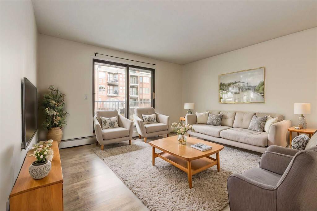 Discover the charm of this spacious two-bedroom condo located in the heart of Lower Mount Royal, just steps away from the vibrant shops and restaurants of 17th Avenue. This unit is perfectly positioned on the second floor, offering a peaceful retreat with elevated views. The open-concept layout is ideal for modern living, featuring a bright living room that seamlessly connects with the kitchen and dining area. The kitchen is fully equipped with ample cabinet and counter space, perfect for preparing your favorite meals. Step out from the living room onto a welcoming balcony, where you can enjoy picturesque views of the mature, tree-lined street. The expansive primary bedroom boasts dual closets and easily accommodates king-sized furniture. A second well-sized bedroom and a newly renovated four-piece bathroom complete this beautiful space. Experience the convenience of urban living in an unbeatable location—ideal for first-time buyers or investors!