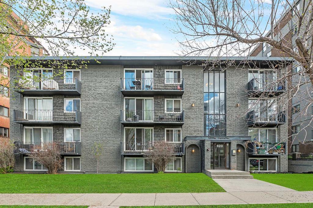 Centrally located & nicely updated 1 bedroom condo just 2 blocks from 17th Avenue! The open plan presents laminate flooring, showcasing a spacious living room with enough space for a computer desk – perfect for those work-from-home days. The kitchen is open to the living area & features maple cabinets, ample counter space & stainless-steel appliances. A cozy dining area is adjacent to the kitchen. Completing this condo is a spacious bedroom with double closets, a 4 piece bath, convenient in-suite laundry & one assigned parking stall. The location can’t be beat – steps to 17th Avenue restaurants & cafes & close to shopping, public transit & walking or biking distance to downtown. Immediate possession is available!
