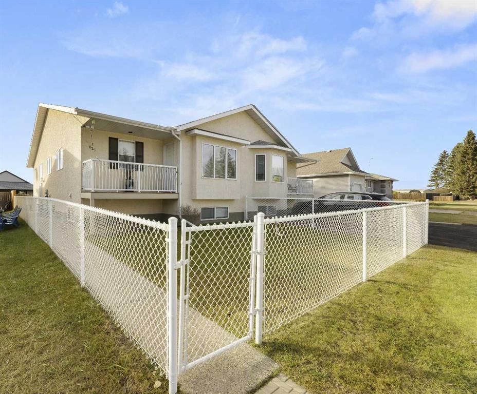 Clean, classy, spacious, bright and cheery best describe this wonderful 1/2 duplex nice located in S.W. Sundre, close to shopping, post office, and drug stores. The kitchen is nicely laid out with most of the appliances being fairly new and along with the dining area boast an abundance of natural light. There are 3 bathrooms and 4 bedrooms with 3 on the main floor and one in the basement, the primary bedrrom is huge and has an outside entry to a small deck. The basements is fully finished with one bedroom and a 4 piece bathroom along with a huge family room. The property is completely fenced with white chain link fencing in the front and treated boards at the back yard. There is a rear concrete pad for parking off the alley covered by an attractive gazebo. There is a nice sized cedar lumber deck overlooking the back yard that has glass panels. Truly this is a very classy and tastefully decorated home that must be visited to admire and absorb all that is present
