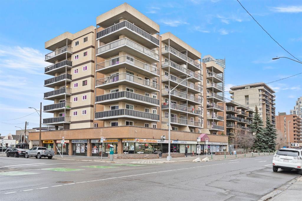 Welcome to The Ravenwood! This 8-storey apartment building is ideally located just minutes from Kensington, the river, and downtown. Perfect for singles or couples, this charming 1-bedroom unit on the 4th floor boasts an inviting open floor plan with elegant hardwood and tile flooring throughout. The kitchen features sleek black appliances, Maple cabients, seamlessly flowing into a spacious living room that opens onto a sun-drenched South-facing balcony—ideal for morning coffee or evening relaxation. The generously sized bedroom includes a large mirrored closet and laminate flooring, conveniently situated next to a full bathroom. Enjoy the added benefits of a spacious in-suite laundry and storage area, as well as a titled parking stall in a secure underground parkade. The building also offers a bike storage room and a well-equipped exercise room. With the vibrant shopping and amenities of the Beltline just a stone's throw away, this unit is the perfect retreat for the urban dweller seeking comfort and convenience, or for a savvy investor looking for a perfect rental opportunity!