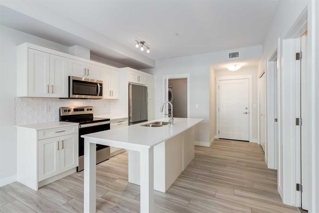 Don't miss the exceptional opportunity to own or invest in a highly sought-after main-level apartment in the prestigious lake community of Auburn Bay. This impressive 2-bedroom, 2-bathroom residence boasts a spacious layout, a well-appointed kitchen with premium countertops and stainless-steel appliances, and a sizable island perfect for culinary enthusiasts. Ideal for young professionals, the property offers ample space to establish a home office or den. Additional features include in-suite laundry, a designated locker in the parkade for extra storage, and a titled underground parking stall for added convenience. Situated just a short 5-minute drive from essential amenities and recreational facilities, including grocery stores, dining options, and community activities. Enjoy exclusive access to the community beach, making this property a lucrative investment opportunity not to be missed.