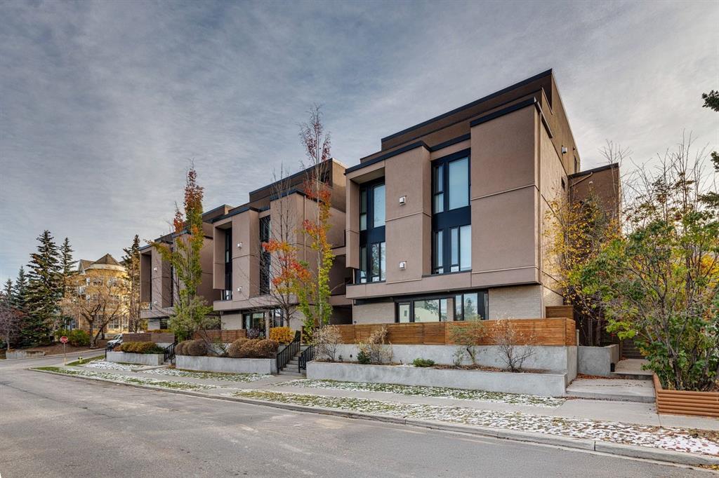 This is a single level apartment with a TOWNHOME vibe featuring PRIVATE front & back access! You can enjoy walking right into your home without going through the lobby & you can access your parking directly through your back door without having to go outside! The epitome of luxury living, this property will exceed your every expectation. This corner unit offers an exquisitely curated interior with a private terrace & outdoor patio space all located within minutes to the highly sought out shops, restaurants & boutiques in Marda Loop. This inner city gem is over 1,426sq ft of premium living space & is embellished by its bold & romantic hues. Superior architecture & build design, this home features its own private access from the street & allows ideal & quick access from the back that goes directly into your mud room & garage space. As you enter this home, you'll step into a designed foyer & into an open concept floor plan featuring plank hardwood floors, wall of windows & access to the front terrace. A glass feature wall encompasses the living room highlighted by the gas fireplace and bold curtains draped over the windows create a dark romantic mood that flows into a grand formal dining space that is ideal for entertaining. A perfect kitchen is fully equipped with sprawling quartz countertops, Euro style cabinets, stainless steel Bosch appliances, breakfast island, & a gas cooktop. Separated from the living space is where you'll find a laundry area, full 4-piece bathroom, & two ample sized bedrooms. The master retreat overlooks a private patio space, ideal for your morning coffee & comprises of a custom built-in walk-in closet & a magnificent 5 piece ensuite equipped with heated floors. One of the many features in this home, is that you'll find your own mud room/storage area with private access to your single attached heated parking stall, which is extremely rare to find anywhere else in Calgary! Other highlights include access off the living to your large terrace featuring a gas hook up, your own utility room with furnace, A/C, snow removal & exterior maintenance included, & all the amenities Altadore has to offer! This is honestly, a one in a haystack kind of apartment in one of Calgary's top premier locations!! Find your home today and live in a townhome style without all the stairs!
