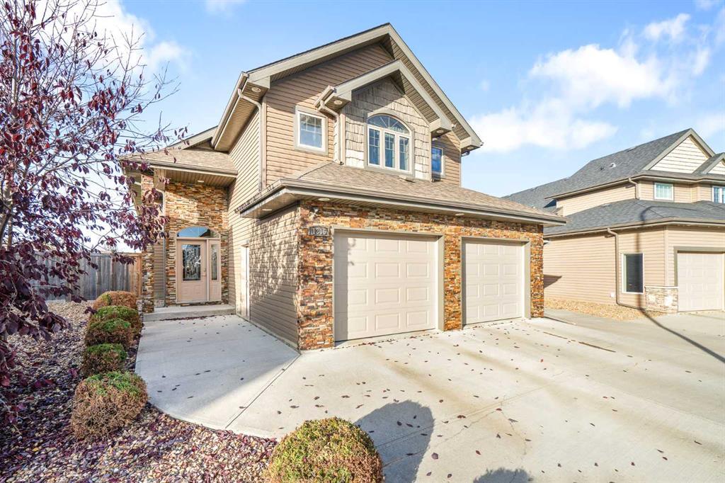 Beautiful College Park modified bi-level with gorgeous upgrades. Sitting on a large pie-shaped lot, this home was built to impress! Featuring extensive tile and stonework throughout including gorgeous tiled showers, luxurious tile backsplash, floor to ceiling stone around the gas fireplace, stone details on the exterior façade and granite countertops. The stunning kitchen is the focal point of the main floor and features a ton of cupboard and counter space, a gas range, custom hood fan and built-in appliances including an espresso machine! Step through the garden doors and enjoy the hot tub from your south facing covered deck or step down to the spacious backyard and relax around the fire pit with family and friends! This 5-bedroom home has it all including a great location and loads of features. Additional features include: built in sauna in the basement, heated garage with sump and hot and cold taps, central A/C, water softener, triple concrete driveway plus a large RV parking area, shed and central vac