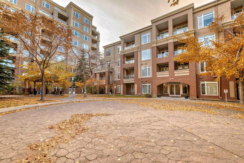Set in the heart of peaceful Spruce Cliff, this beautiful condo in the private and treed Copperwood complex is a quiet retreat that caters to the active urban lifestyle, with location and convenience at the forefront, while still embracing a serene setting and proximity to nature. A rare find, this unit is bright, stylish, and well-maintained, and it has two titled underground parking stalls! As soon as you step into the building, you’ll appreciate the newly renovated lobby, and the attractive aesthetic continues into the flat itself. A large entryway greets you with plenty of room for outerwear in the large double closet. A built-in office nook is fantastic for your work from home set up, and the home opens into a large living and dining area that faces a cozy gas fireplace. The kitchen is elegant in rich wood cabinetry with statement lighting overhead. A breakfast bar connects the space, allowing conversation to flow as you cook your signature dish for friends and family. On nice days, you’ll enjoy opening the doors to the covered balcony to grill or dine al fresco as you take in picturesque sunsets to the west. The primary suite is expansive, with huge windows that bring in so much natural light. A walk-in closet and an ensuite complete your personal retreat. Across the unit, a big second bedroom is perfect for guests, and also includes a walk-in closet. The main bathroom is well-appointed, and there is also in-suite laundry. This apartment has two titled stalls in the heated underground parkade, which also features assigned storage lockers, a car wash, and a well-outfitted workshop. Copper Club holds a number of well-planned amenities for residents, including a high-end fitness facility, and an owner’s lounge and party room ideal for hosting larger social events. Guest suites and visitor parking are also available, making this one of the best equipped complexes in the city. Landscaped grounds are lovely to walk through, and the courtyard is a pleasant place to take a break and take in the surroundings. The Shaganappi Golf Course is right next door, and there are plentiful parks throughout the community. Within a block you can access walking paths that connect to the Bow River Pathway running through the entire city for hours of outdoor adventures and stunning scenery. Bicycle commuters love that they can be downtown in close to the same time as driving, which only takes 10 minutes. Westbrook Mall is in walking distance, offering a range of shopping and dining options, and transit in this community is fantastic, with the C-train station there as well. Nearby 17th Avenue is a popular destination for foodies, with some of the best restaurants in the city, and this well-connected neighbourhood has quick access to several primary routes, making it easy to visit friends, run errands, or head out into the mountains for your favourite activities. See this one today!
