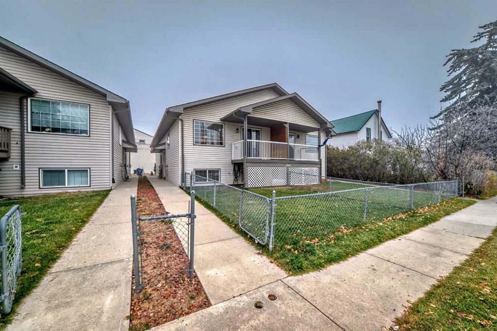 This inviting 2-bedroom (NO CONDO FEES!) 4 plex home offers a functional 1075 total sq. ft. layout over two levels. Enjoy an open-concept main floor with a large kitchen, bright living room, 1/2 bath, dining room that leads to a private covered deck. The lower level features two bedrooms, a full bathroom, and laundry facilities. With a fenced yard and off street parking stall. This home is located just a short walk from Kinsman Park and downtown Strathmore shopping. A perfect home for those seeking a convenient lifestyle.